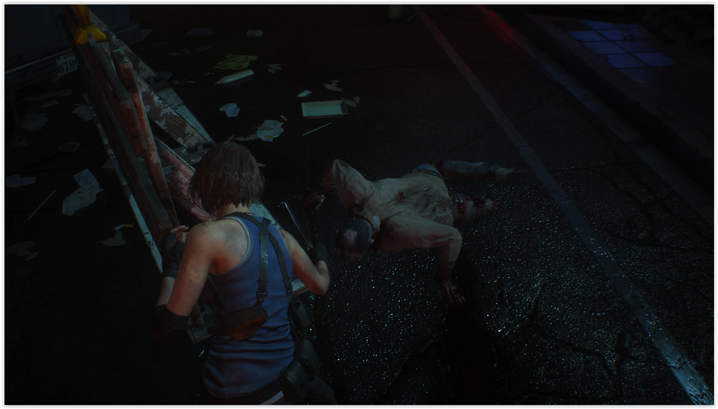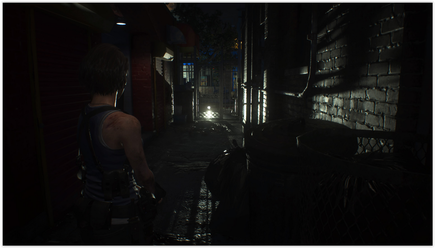 Graphiquement le moteur RE Engine fait encore des merveilles. Je le trouve encore plus beau que Resident Evil 2 Remake, il y a beaucoup plus de détails et les animations sont beaucoup plus fluides. On a la possibilité de rentrer dans plusieurs boutiques des rues, pour se servir, en munitions où autres. Après ça reste un jeu en couloir, les ruelles abandonnées sont remplies de voitures et autres qui vous bloquent le chemin. Les effets de lumières sont d’ailleurs plus beaux, après c’est surtout, qu’on a plus de lumières à l’extérieur que dans un vieux commissariat.