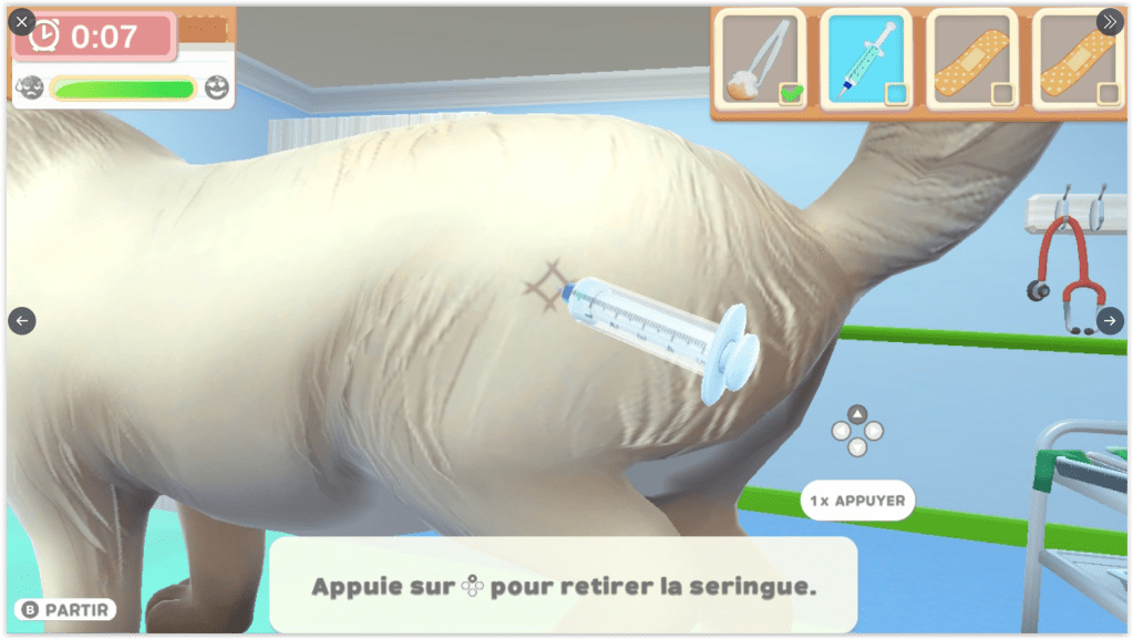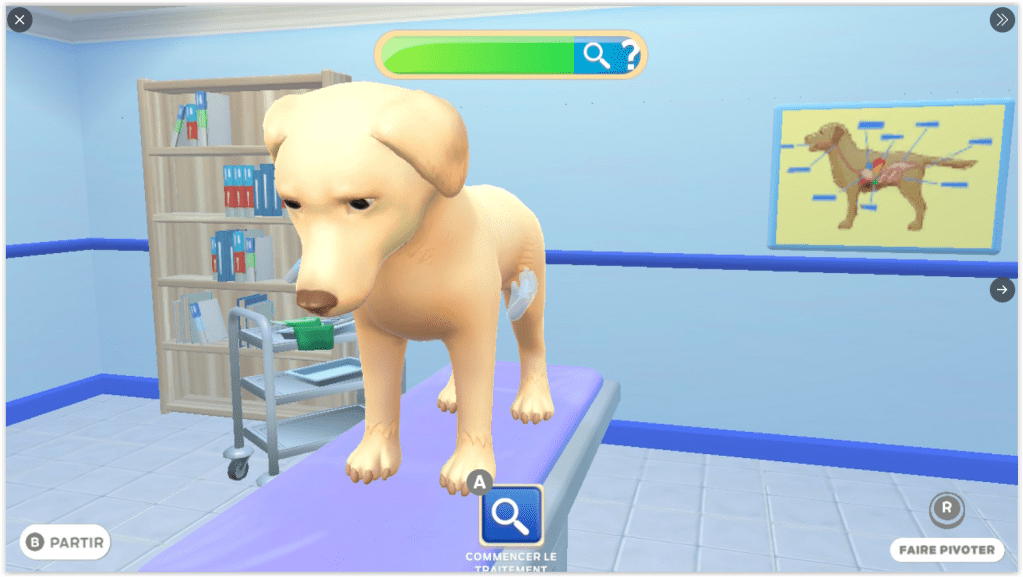 Tous les jours, vous recevez deux patients à la clinique. Vous devez commencer par examiner la bête puis lui appliquer les soins nécessaires. Le jeu est sympa mais assez vite lassant car il est énormément répétitif. Après 3,4 journées, on a vite compris le système de jeu et on en fait vite le tour.