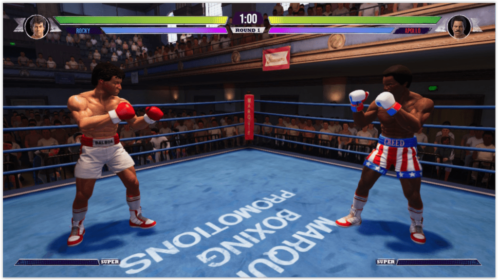 Après malgré ce choix de D.A, les acteurs de la saga sont facilement reconnaissables. Le jeu se divise en plusieurs modes de jeux, très connus du genre. Le mode arcade permet de suivre l’histoire de chaque personnage, le soucis c’est que ça reste assez court, même celle de Rocky est vachement courte.