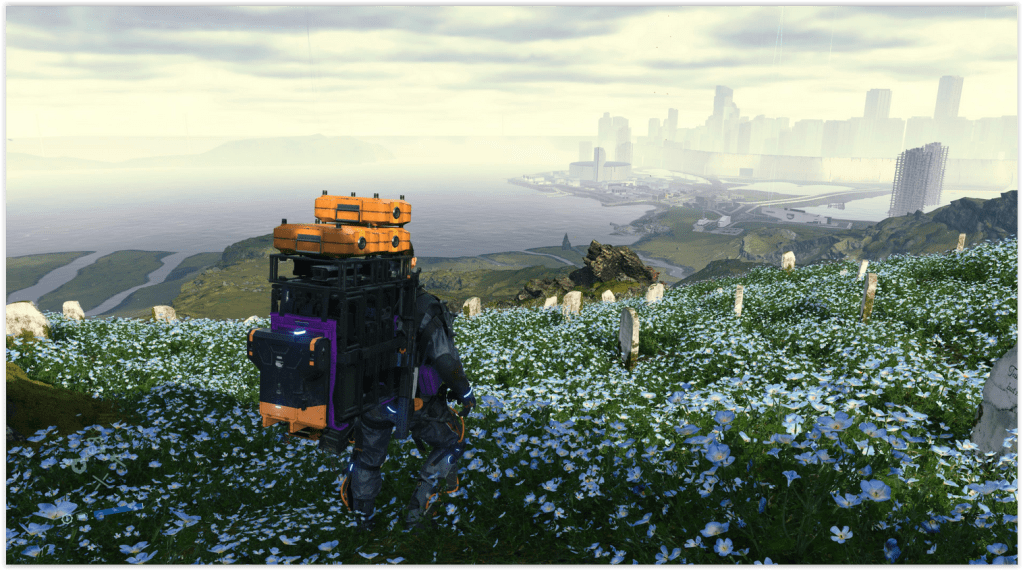 Pour commencer, je vais définir ce qu’est le « Death Stranding ». C’est un phénomène qui a pour but de rétablir l’ordre dans le cosmos, en soit corriger l’erreur en anéantissant toute forme de vie. Il y eu quatre Death stranding ( l’extinction des dinosaures notamment ) quand le jeu commence, le 5ème a eu lieu et le but du personnage principal du jeu sera d’éviter le 6ème qui vise l’extinction complète de la vie sur Terre. Je vais vous résumer le scénario en essayant d’éviter tout spoile, ce qui n’est vraiment pas facile pour un jeu centré radicalement sur son histoire. Le jeu se passe dans un futur proche où un événement appelé le Death Stranding a provoqué une ouverture en deux mondes. Les gens morts peuvent revenir de la Grève dans notre monde. Cependant, ils reviennent dans leur propre corps nécrosé et se changent en entité, ni totalement mort ni totalement vivant et on les appelle les échoués. Les humains incinèrent les corps pour empêcher l’âme d’y revenir ainsi cette dernière se trouvant dans la grève ne peut guère revenir dans son corps et passe donc dans le royaume des morts. Comme ça, ça semble ultra mega super compliqué, je dois l’avouer mais dans le jeu c’est tout à fait compréhensible, pas forcément dès le départ du titre car on vous balance tellement d’informations à la gueule qu’on comprend rien mais en avançant dans l’histoire et jusqu’à la dernière seconde du jeu tout devient claire.
