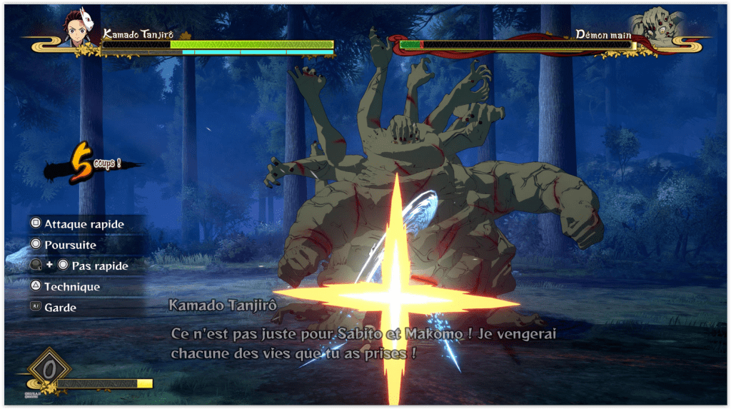 L’histoire du manga se passe au début du 20ème siècle, dans un Japon en pleine industrialisation. Le héros s’appelle Kamado Tanjirô, un jeune vendeur de charbon qui a découvert que sa famille entière est morte à cause d’un Démon. La seule survivante est une de ses sœurs qui s’est transformé en Démon mais elle garde une part d’humanité. Notre héros décide donc de se mettre à la recherche d’un remède et devient ainsi un tueur de Démons.Graphiquement, le travail a été fait. Visuellement, c’est proche de l’animé. Les attaques sont bien retranscrites, c’est vraiment très joli. Le gros soucis du jeu, c’est que même si visuellement, c’est proche de l’animé. Techniquement, le jeu est loin d’être au niveau des jeux d’aujourd’hui. Les textures sont faiblardes, le personnage marche à deux à l’heure et les environnements sont très vides.Concernant le gameplay, on reprend les jeux Naruto et on change la skin pour Demon Slayer. En gros, ce sont des combats en arène fermée adaptés pour les novices du genre. On sort facilement des gros coups, c’est simple et fun. Bref pour conclure, le jeu est vraiment destiné au fan, le scénario reprend une partie de l’animé, jusqu’au dernier film sorti en salle. La répétition du titre fera grincer certaines dents, mais quand on est fan, on s’en tape.