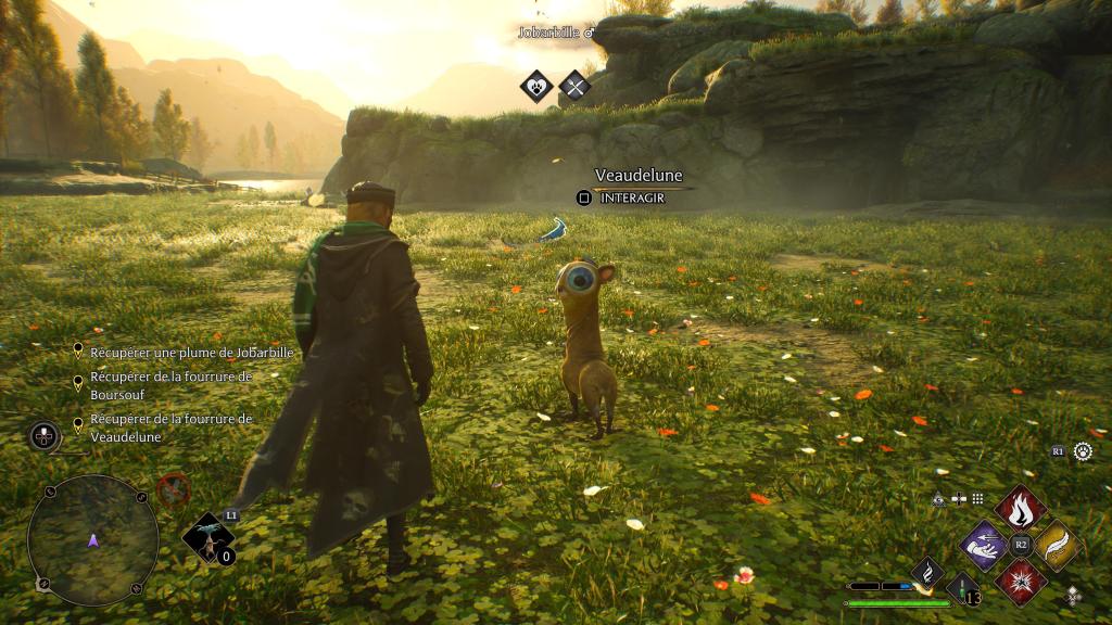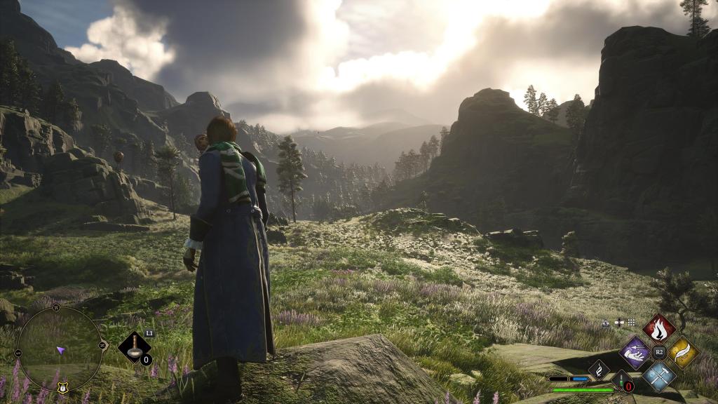 Concernant le gameplay, on est sur une sorte d’Uncharted à la baguette. On dispose d’un tire de base, mais qu’on peut modifier grâce à des sorts qu’on apprendra lors des cours qui se résument à réaliser des missions stupides et le prof vous offrira comme récompense la possibilité d’apprendre un sort ou alors vous les débloquerez à travers d’excellentes missions secondaires. Oui car il y a vraiment des missions secondaires très intéressantes, même bien plus que la trame principale. Lors des combats, on peut consommer des potions, pour améliorer pendant un temps notre force, notre défense ou reprendre de la vie. Qui dit Rpg, dit arbre de compétences et là, il sera possible d’améliorer vos sorts, comme par exemple courir en utilisant le sort pour être invisible ou améliorer la puissance de tel ou tel sort etc. Le jeu a clairement un excellent gameplay, je trouve juste que le menu des sorts est assez chiant car on ne peut qu’en avoir 4 à disposition de base, puis 16 sorts mais ce n’est pas très intuitif, on se retrouve souvent en combat à faire les 4 même en oubliant certains. Surtout qu’après les 16 sélectionnés, il y en reste dans un sous menu, donc c’est un sacré bordel. Et maintenant, on va parler de ce qui fâche, c’est le gameplay au balai qui est une merde sans nom. Au départ, c’est horrible, déjà c’est compliqué à gérer, mais en plus, c’est lent. Même en débloquant quelques améliorations et en ayant le meilleur balai, croyez moi, ça ne va jamais aussi vite que dans le film. On a aussi la possibilité de contrôler des animaux volants, c’est classe mais tout aussi lent.