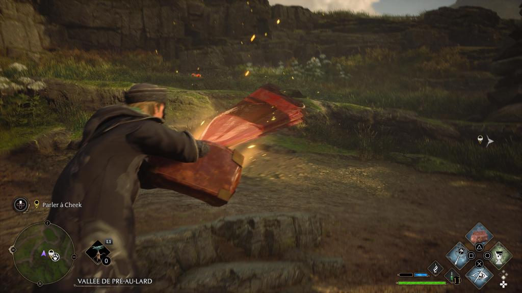 Outre l’aventure, vous avez plein mais plein d’activités au sein de l’univers du jeu. Vous avez la possibilité de faire du shopping à Pré-au-Lard, que ce soit vêtements ou balai, plantes, potions etc. Mais aussi faire la chasse aux ballons volants en les crevant avec votre balai et décorer votre salle sur Demande, cette dernière sera à votre disposition assez rapidement dans le jeu pour pouvoir créer des potions, cultiver des plantes, améliorer votre équipement mais aussi avoir votre propre réserve naturelle d’animaux fantastiques. Sans mentir, même si le monde manque de variétés, il reste assez vaste et sympathique à parcourir donc clairement en terme de durée de vie, le jeu fait vraiment le café. Le vrai truc qui marche avec le jeu, c’est le coté magique des choses. La magie qu’on pouvait retrouver dans les films est très bien retranscrite. Les peintures qui bougent, le balai magique, les marches qui apparaissent quand on avance, la liste est longue. La magie est omniprésente dans le jeu et c’est vraiment bien foutue. J’ai pu constater que certains youtubeurs osaient dire que le monde ouvert se rapprochait d’un Breath of the wild ou d’Elden Ring, ce n’est pas le cas. Hogwarts Legacy se rapproche plus d’une formule à la Ubisoft. Régulièrement quand vous allez prendre votre balai, vous ferez face à des murs invisibles où on vous annoncera clairement qu’il est impossible de voler ici alors que visiblement, c’est possible. Je suis désolé mais dans Elden Ring, je peux aller où je veux quand je veux, je n’ai pas un putain de mur invisible dégueulasse qui me stoppe.
