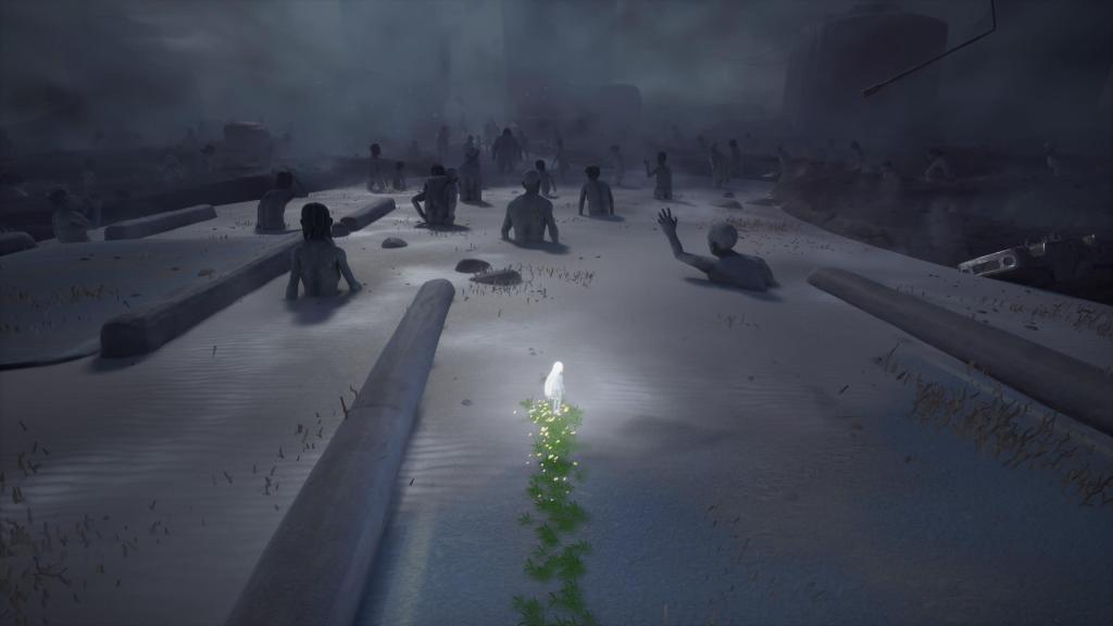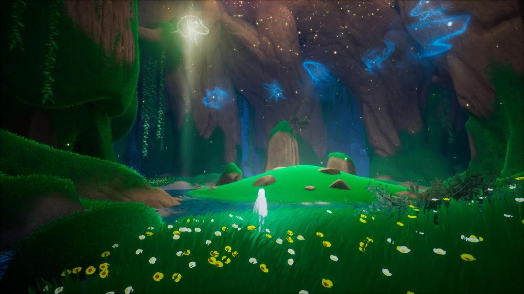 Concernant le gameplay, on est sur quelque chose d’assez basique et simple. On peut dasher, sauter, effectuer un double saut, on peut aussi projeter notre esprit mais aussi le concentrer pour effectuer une sorte d’onde de choc qui va créer de la végétation tout autour de nous. Malgré que le jeu soit clairement un grand couloir, son level design permet une excellente utilisation du gameplay et donc de casser une routine qu’on pourrait avoir. Le jeu est plutôt une sorte d’expérience indé qu’un vrai jeu. Il propose un gameplay simple avec une navigation dans les lieux très facile d’accès et il est loin d’être très punitif, on n’est pas sur du Die & Retry. C’est une expérience à vivre, très rafraichissante.