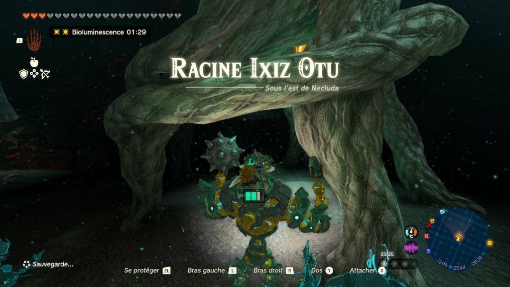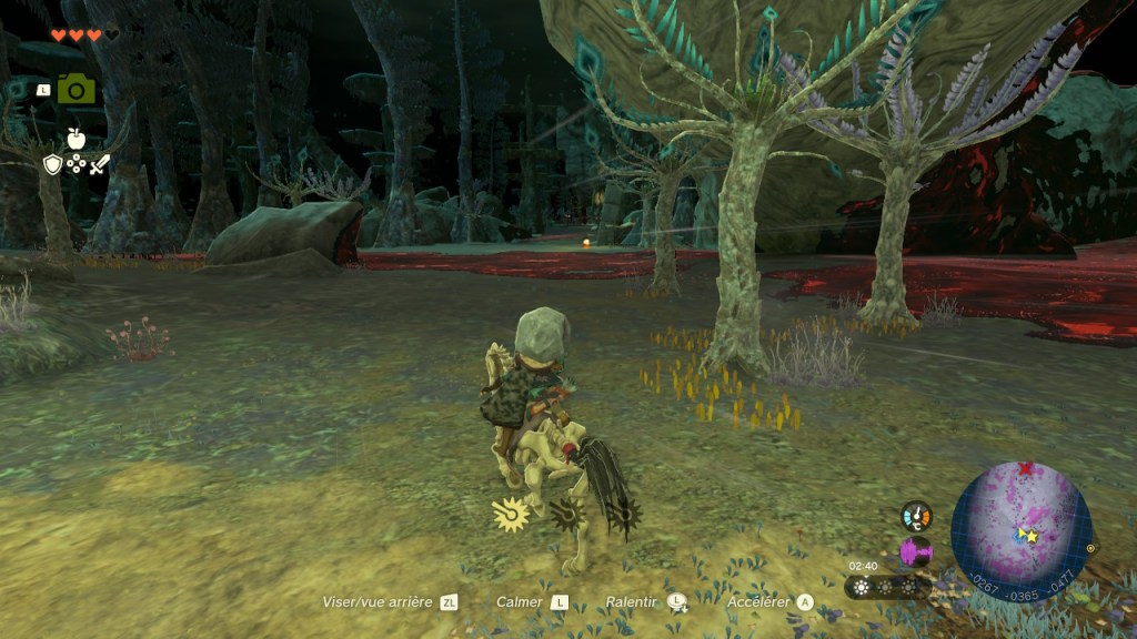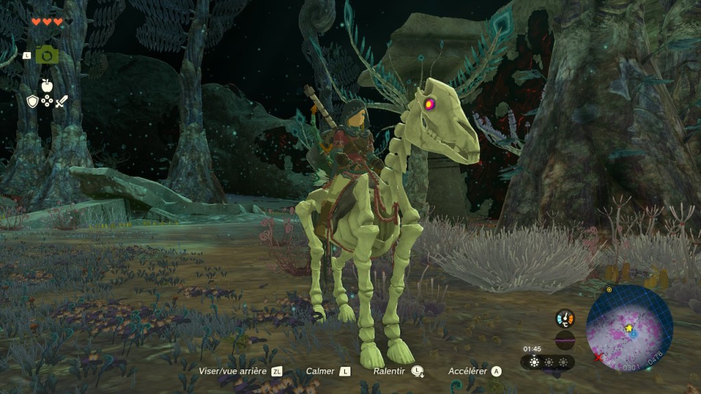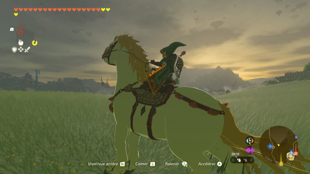 Techniquement, le jeu est une « MASTERCLASS » sur SWITCH. Il écrase tout ce qui est sorti sur la dernière de Nintendo. Mais Breath of the Wild encore aujourd’hui, il écrase toutes les dernières sorties de la Switch. Le seul soucis, c’est que parfois le framerate toussote quand il y a BEAUCOUP d’ennemis ou dans les villages que ce soit en portable ou la Switch en dockée. À côté de ça, même si la direction artistique de la zone principale qu’on connaît de Breath of the Wild est toujours aussi magnifique, les îles flottantes ne sont pas folichonnes et les sous-terrains sont affreux. Les sous-terrains sont principalement dans l’obscurité mais quand ça s’éclaire en y avançant, c’est vraiment laid. Heureusement, qu’on n’est pas vraiment obligé d’y passer longtemps dans le jeu, sinon j’aurais lâché la console.