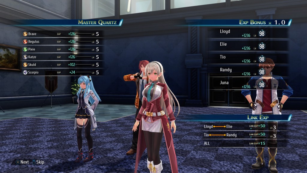 Nous allons donc démarrer ce voyage dans le monde de Zemuria avec le personnage de Lloyd dans la ville de Crossbell accompagné de la SSS (Special Support Section) chargé de défendre la ville qui à été infiltré par un groupe de terroristes peu de temps après les événements de Cold Steel IV. De l’autre côté du monde, plus précisément à Erebonia, nous retrouvons Rean et ses compagnons qui seront chargés d’enquêter sur la disparition du couple princier Olivert et Scherazard pendant leur lune de miel. Et pour finir, on suivra les périgrinations d’un mystérieux groupe dirigé par l’énigmatique C.