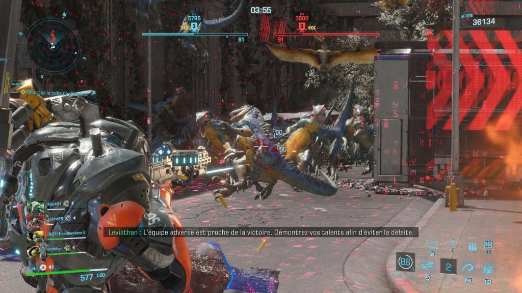 Le but du jeu, une partie commence est c’est une sorte de course, c’est l’équipe qui passera le plus rapidement les étapes qui gagnera. Les étapes sont « buter tous les dinosaures qui TP devant vous », bref du PVE très basique. Et la dernière étape sera de protéger un gros cube jusqu’à sa destination et à la fin ça part en PVP avec l’équipe adverse. Bref comme vous constatez, c’est du déjà-vu et c’est surtout rien de passionnant. Surtout que le soucis, c’est que c’est ça à chaque partie.