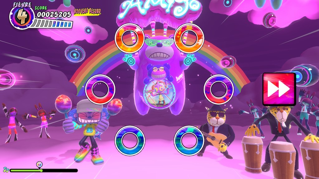 L’ennui d’ailleurs parlons en car il pourrait vite venir si vous jouez tout seul dans votre coin. Car oui ce Samba De Amigo Party Central est clairement un titre fait pour s’éclater à plusieurs en soirée en famille ou entre amis. Un peu comme un Just Dance ou un Nintendo Switch Sports. Car autant enchaîner quelques titres à la suite c’est hyper fun et très libératoire, autant quand on le fait seul, on en a vite fait le tour et on finit par se lasser. Alors oui j’ai trouvé que c’était hyper fun mais vous n’y passerez certainement pas des heures d’affilées dessus, bon déjà parce qu’au bout de quelques chansons vous n’en pourrez plus physiquement, du moins ça a été mon cas, je commence à me faire vieux, c’est un fait. Je vous conseille donc ce titre pour vous éclater à plusieurs !