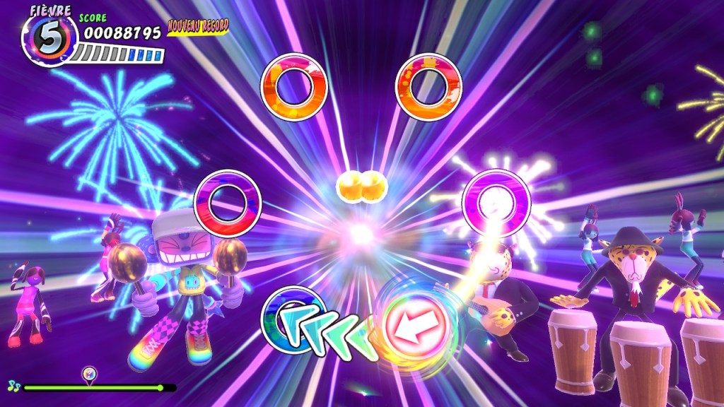Déjà commençons par le commencement, pour les néophytes du genre, Samba De Amigo Party Central est un jeu de rythme, avec une attente on ne peut plus simple, il vous sera demandé de bouger vos JoyCons dans des directions données au rythme de la musique. Le personnage que vous aller incarner est un petit singe qui aime faire la fête avec ses maracas ! Alors ne le décevez pas car il ne sera pas content si vous n’avez pas le rythme dans la peau.