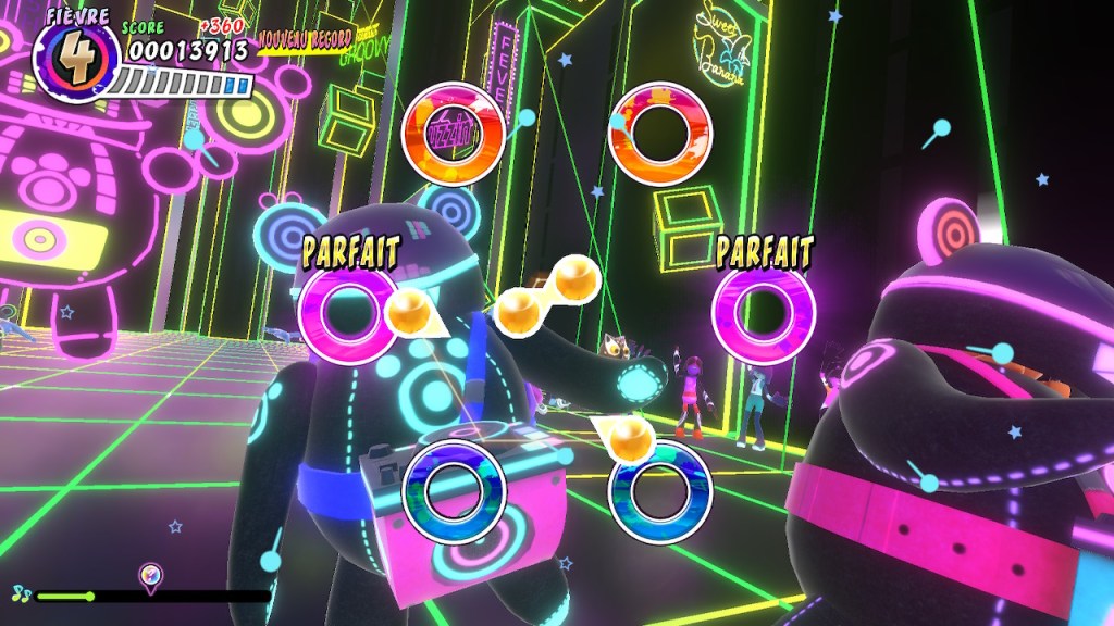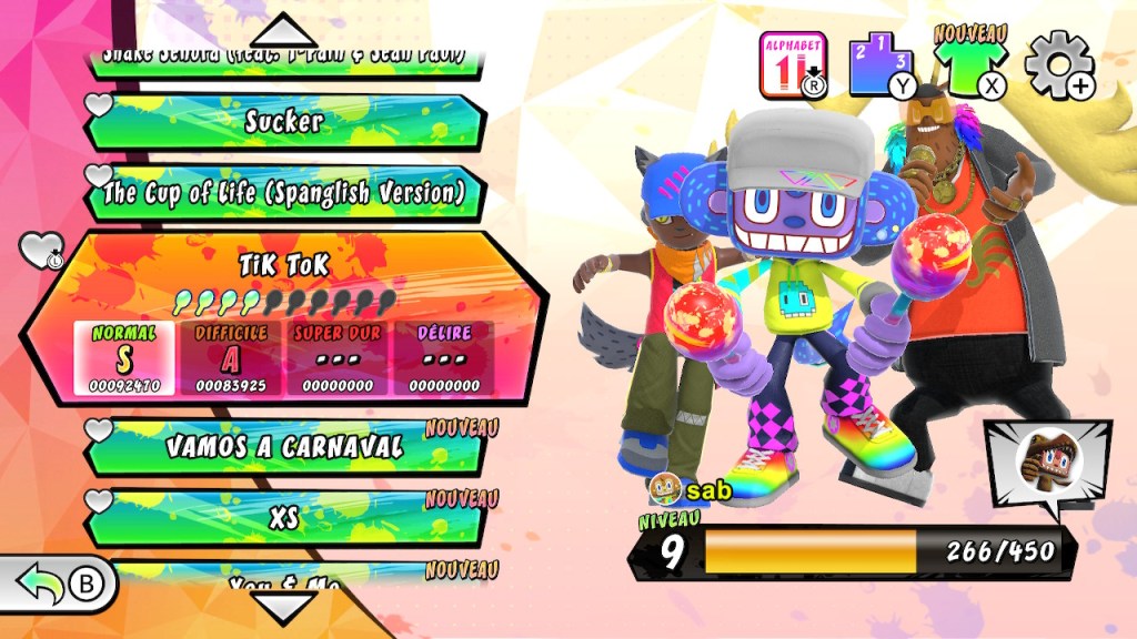 Côté menu ça reste basique avec les modes habituels, le mode solo ou à deux en mode local, un mode où l’on peut jouer jusqu’à quatre amis en ligne après avoir créé un salon privé, un mode intitulé « À deux c’est mieux » composé de différents mini-jeux, un mode défi et enfin un mode « Fiesta Mondiale », une sorte de Battle Royale Planétaire où l’on se battera contre vingt joueurs. Ha oui il y a aussi le mode StreamiGo! qui vous invite à réaliser des défis pour obtenir un maximum de followers, exactement dans l’air du temps quoi !