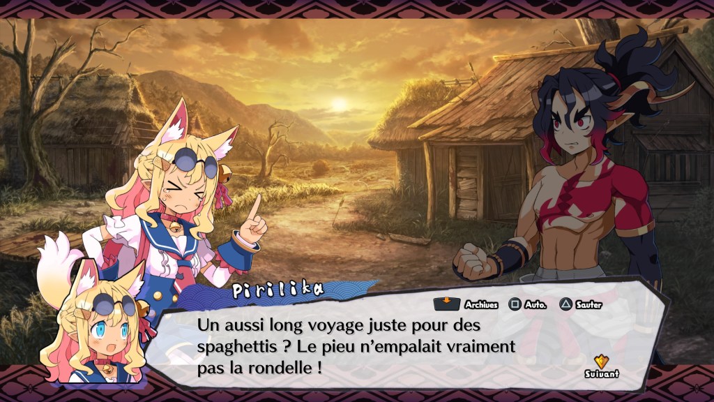 Tout d’abord un peu d’histoire, nous allons donc vivre l’aventure aux côtés de la pétillante Pirilika, fan absolue du Bushido, et qui désire plus que tout de rétablir dans les Enfers déchaînés des Sous-Mondes. Pour l’y aider, elle pourra compter sur le démon Fuji, qu’elle va rencontrer dès le début de son périple. Notre naïve héroïne complètement déjantée qui dit absolument tout ce qu’elle pense à voix haute et qui déforme à tout bout de champ les expressions usuelles va avoir du fil à retordre en compagnie de ce démon manipulateur qui ne connait absolument pas l’empathie. Cela promet de nombreuses situations cocasses, véritable fil rouge de la Saga.