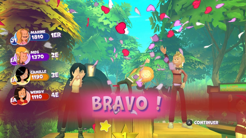 Concernant le gameplay, on est dans une sorte de party-games en solo. En gros, Microids ne s’est pas foulé, ils ont repris exactement la même formule que pour le premier jeu et que pour Inspecteur Gadget. En gros, on est dans un open-world et on peut se balader soit à pieds, soit à roller et rencontrer des PNJ qui vont vous proposer des mini-jeux. Alors je peux comprendre que ce soit pour les enfants, mais la difficulté est inexistante. J’ai l’impression que ce jeu est destiné à des enfants vraiment de bas âge qui ne devraient pas avoir accès à un écran. De plus, les mini-jeux ne sont même pas amusants car on a déjà-vu ça un milliard de fois et beaucoup mieux fait. On a par exemple, des paniers à mettre avec un ballon de basket, du trampoline, où on doit tenter de faire sortir du trampoline nos concurrents ou alors tu tires à l’Alien sur une borne d’arcade.