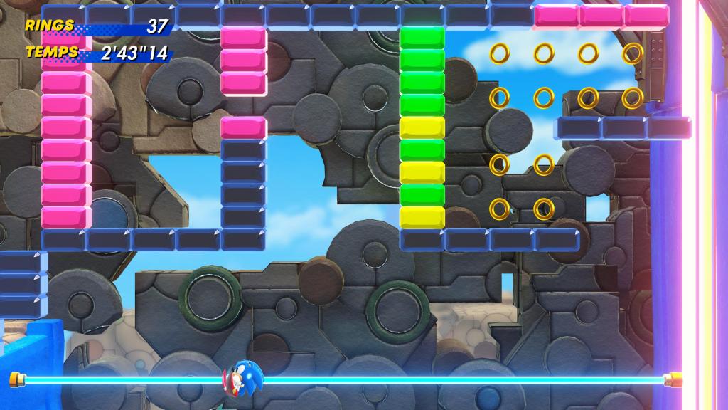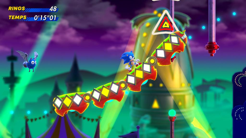 Sonic revient donc avec une toute nouvelle direction artistique en 2.5D et on ne va pas se mentir, c’est joli. Le gros soucis, c’est une caméra à mes yeux bien trop rapprochée. Sinon ça tourne plutôt bien, même si j’ai rencontré quelques petits ralentissements. D’ailleurs, j’ai remarqué des gros soucis de level design, parfois, c’est un vrai bordel, on s’y perd carrément.