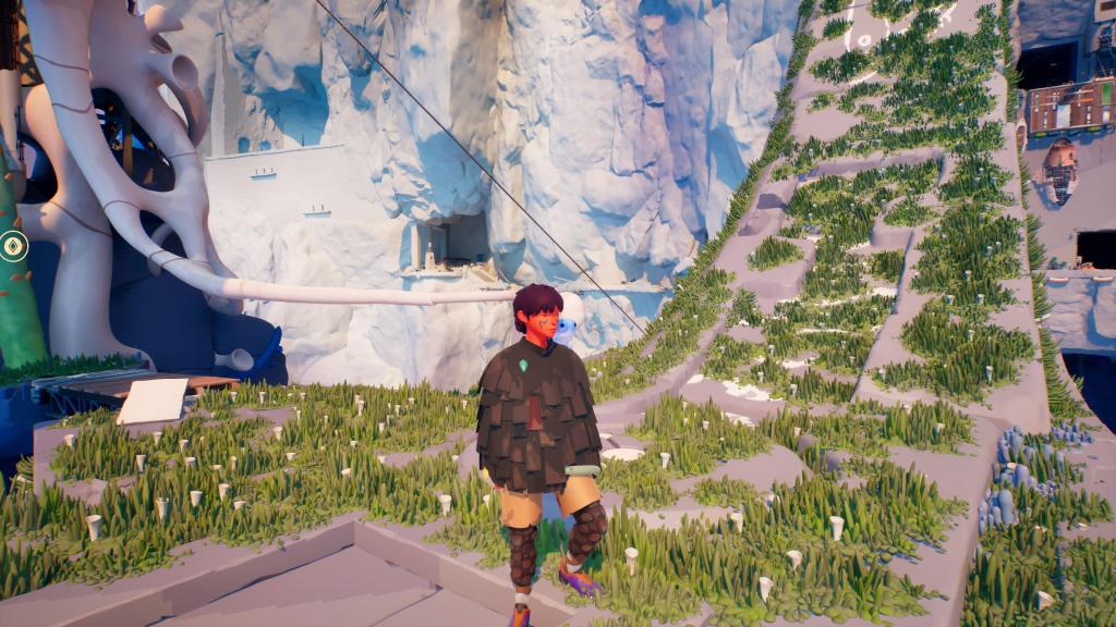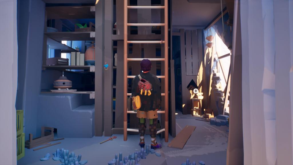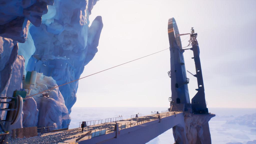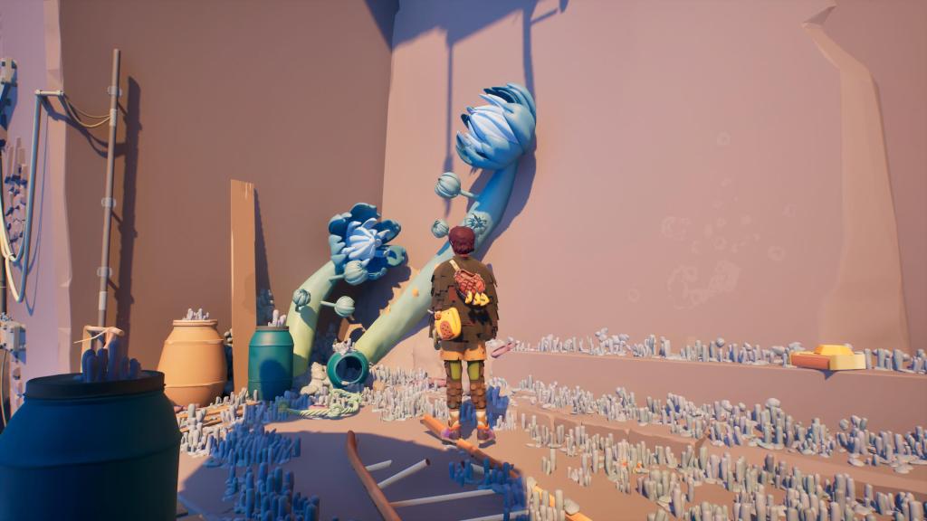 Au premier abord, on pourrait croire que le scénario de Jusant est en retrait et au final, ce n’est pas le cas. L’histoire du jeu est au centre du gameplay. Notre héros est muet, mais malgré ça, le jeu est assez bavard. Le but du titre est de grimper une immense tour et dans la plupart des étages de cette dernière, vous trouverez des notes et des artefacts qui vous permettront d’en apprendre d’avantage sur les anciens habitants. On y apprend d’ailleurs que la pluie n’existe plus dû à la disparition des océans, lacs et rivières. Notre héros n’est pas solo dans son aventure, il est accompagné d’une créature d’eau qui redonne la vie à la végétation et qui clairement vous aidera dans certains endroits pour pour votre escalade.