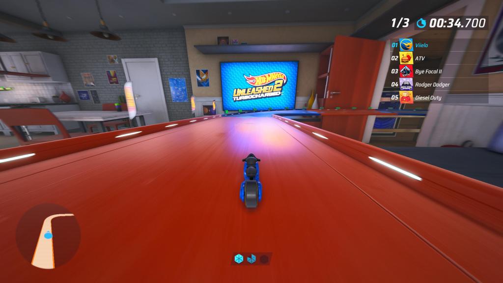 En terme de nouveautés, on peut à présent dasher de gauche à droite pour éviter des obstacles, piloter des quads mais aussi des motos et on a enfin un classement en ligne. Techniquement, c’est toujours aussi beau. Ça tourne divinement bien et sans bug. On ressent bien le poids des différents véhicules, on sent bien qu’on conduit des petites voitures.