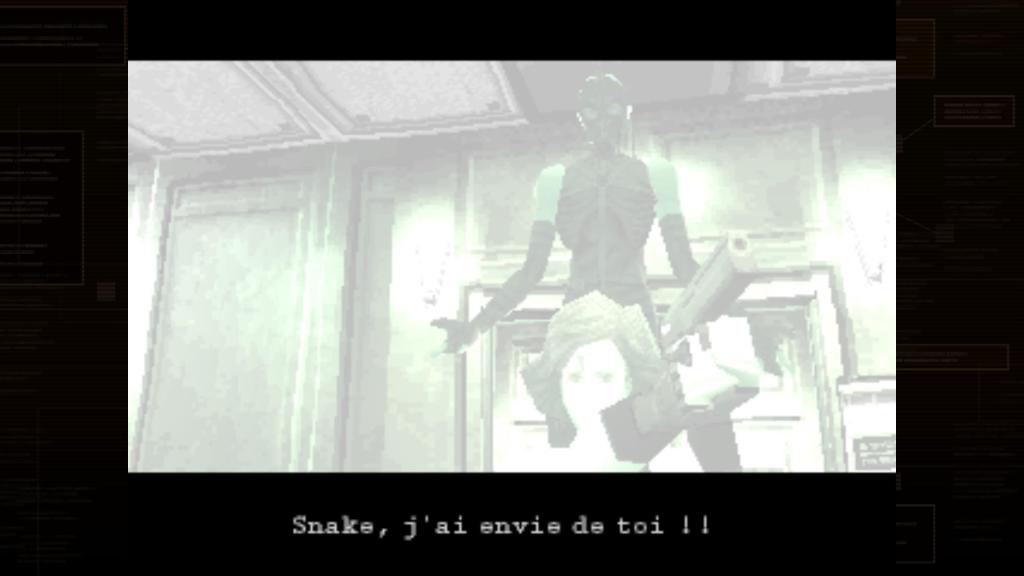 Donc j’ai terminé pour la 98ème fois de ma vie Metal Gear Solid. Et ce fût un réel plaisir, même si le gameplay a vieilli, surtout concernant la visée. Les animations, le scénario, enterre beaucoup de jeux actuels. Mais je vais être clair, ne vous attendez pas à un remaster de qualité, c’est le même jeu sur PS1 avec quelques petites textures lissées et encore… Mais on a la VF et ça c’est important car Metal Gear Solid premier du nom sans sa VF culte, ce n’est pas Metal Gear Solid. Donc voilà, si vous souhaitez retrouver Metal Gear Solid dans son jus, vous allez être servi. Ceux qui s’attendent à un remake, un conseil, attendez encore un peu…