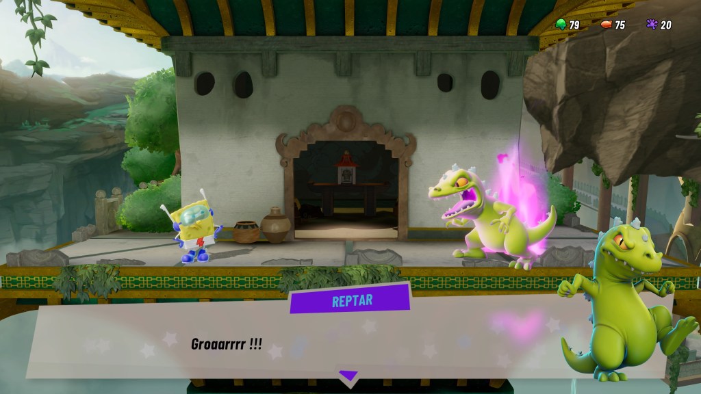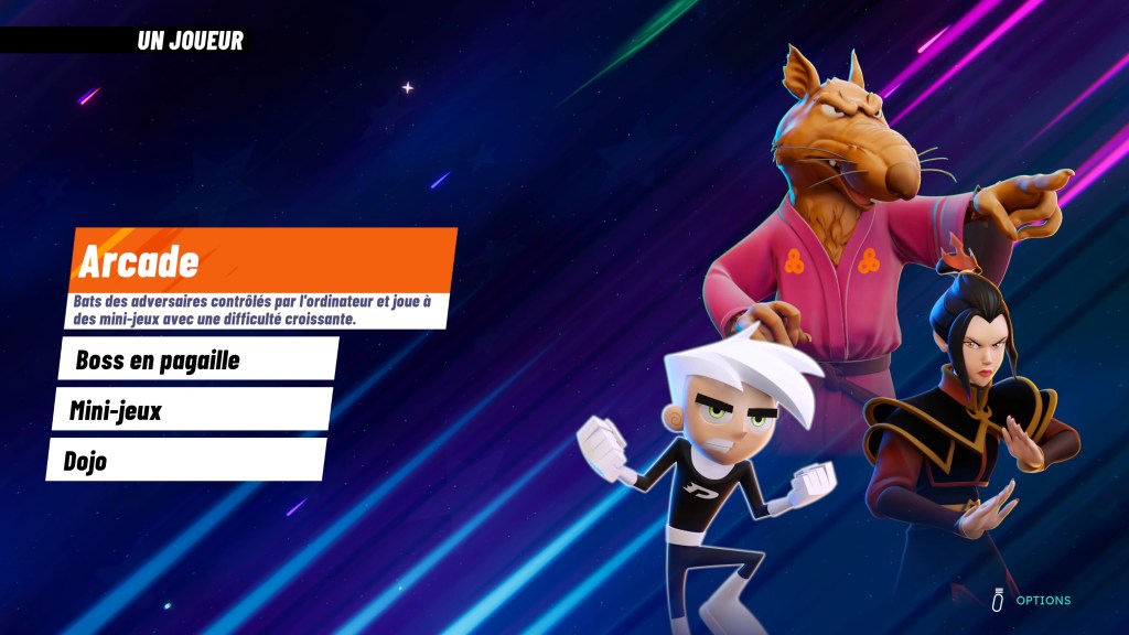 Bon je ne sais pas pour vous mais comme je suis assez âgé (presque 45 ans, oui je sais ça fait un choc), je ne suis pas spécialement familier avec les personnages de la chaîne Nickelodeon. Mise à part les tortues ninjas, Garfield et Bob l’éponge, c’est à peu près tout. Les autres je les connais de vue mais sans plus, merci à ma fille qui regardait les dessins animés quand elle est était petite. Bref il y a donc dans le désordre du Avatar le dernier maître de l’air, Hey Arnold, Les Razmoket, Jimmy Neutron, Bienvenue chez les Loud, Ren et Stimpy Show, La légende de Korra, Danny Phantom ect. J’en passe mais vous avez compris, beaucoup des héros de la chaîne sont présents dans ce jeu de combat survolté. Il y a en tout pas moins de 25 personnages jouables. Ça en fait des combinaisons possibles et surtout des matchs ingongrus entre Raphaël et Reptar par exemple. Mais c’est ça qu’on aime avec ce genre de titre, improbable est le mot clé !