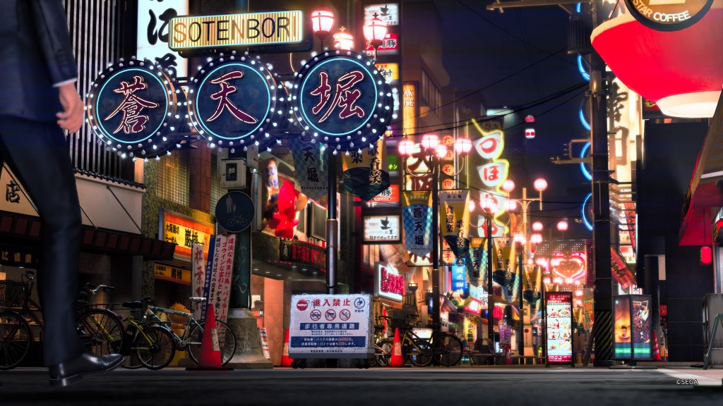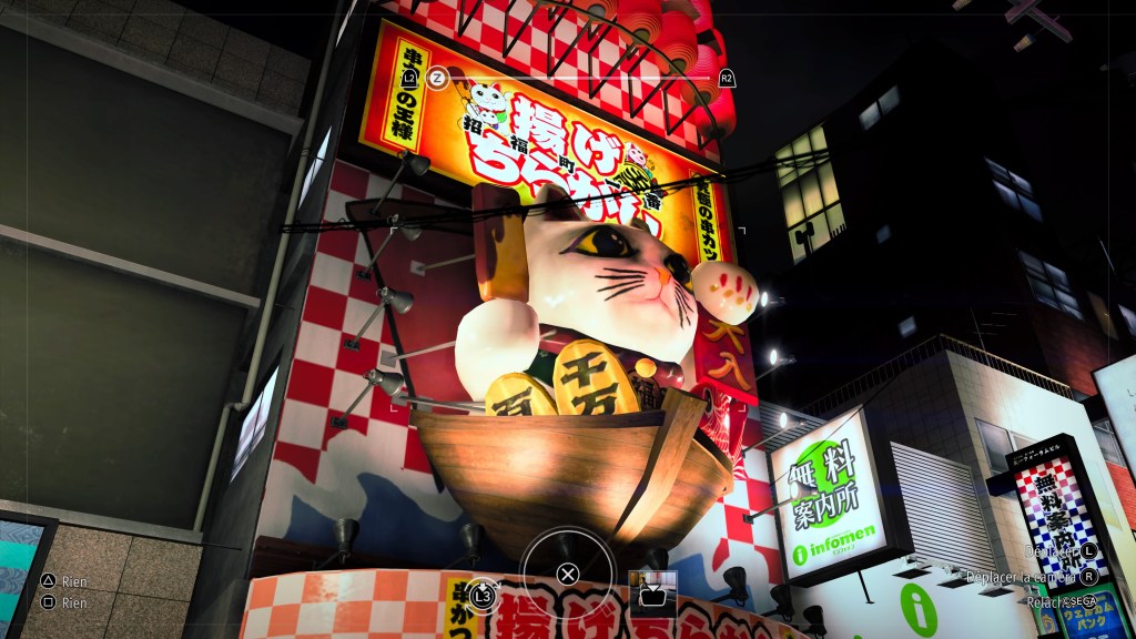 Comme d’habitude nous allons débuter avec l’histoire. Autrefois un yakuza légendaire, Kazuma Kiryu a simulé sa propre mort et renoncé à son nom dans l’espoir de protéger sa famille. Aujourd’hui, les problèmes le guettent à nouveau, une mystérieuse personne cherche à le faire sortir de sa cachette. Pour préserver son anonymat il se fait désormais appeler « Joryu », et c’est donc sous ce pseudo que notre héros s’embarque dans une histoire pleine d’actions et de combats fracassants dans des décors animés remplis d’activités et de personnages passionnants. Alors c’est parti pour une virée vidéo-ludique qui promet de belles choses. Pour les habitués de la saga et notamment de Like a Dragon, nous allons être en terrain connu, le quartier de Sōtenbori est de nouveau mis en avant. J’ai trouvé cela plutôt plaisant et je m’attendais à rencontrer Ichiban Kasuga à chaque coin de rue. Bref, la map est assez grande même si elle a été grandement diminuée par rapport aux précédents opus. En effet ce Like a Dragon Gaiden était à l’origine prévu comme un DLC, ceci explique cela comme on dit… En tout cas, même si la zone de jeu est plus restreinte ce n’est absolument pas dommageable car elle fourmillent d’activités en tout genre. Les rues sont grouillantes de vie je dois bien l’avouer je me suis surpris de nombreuses fois à m’arrêter en plein milieu de mes pérégrinations pour admirer l’environnement.