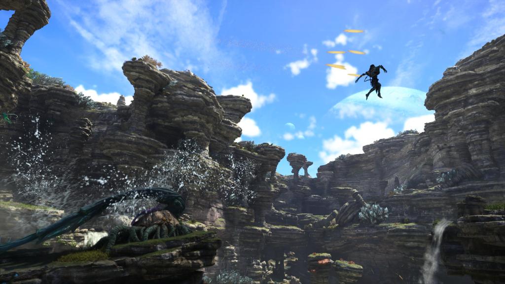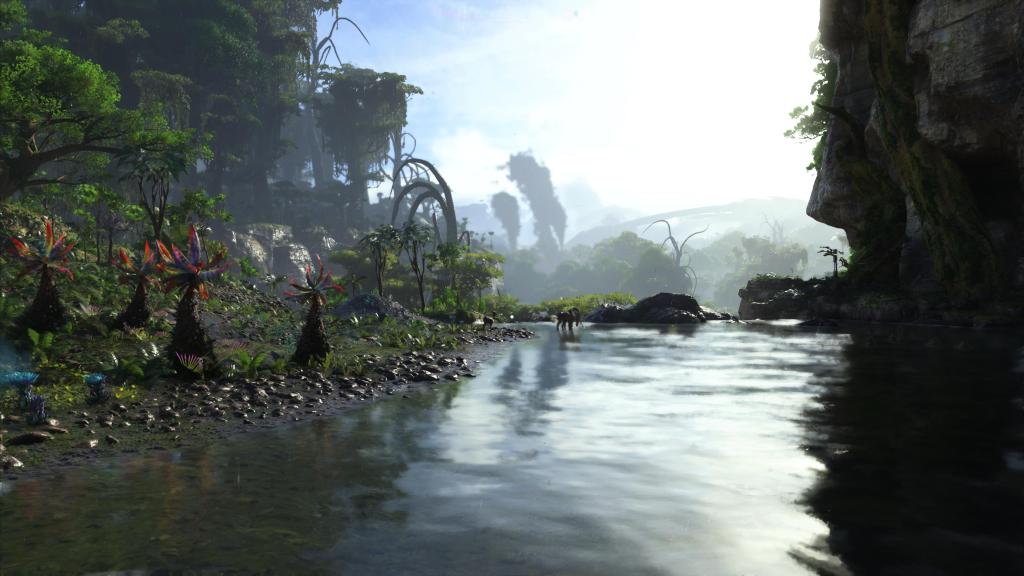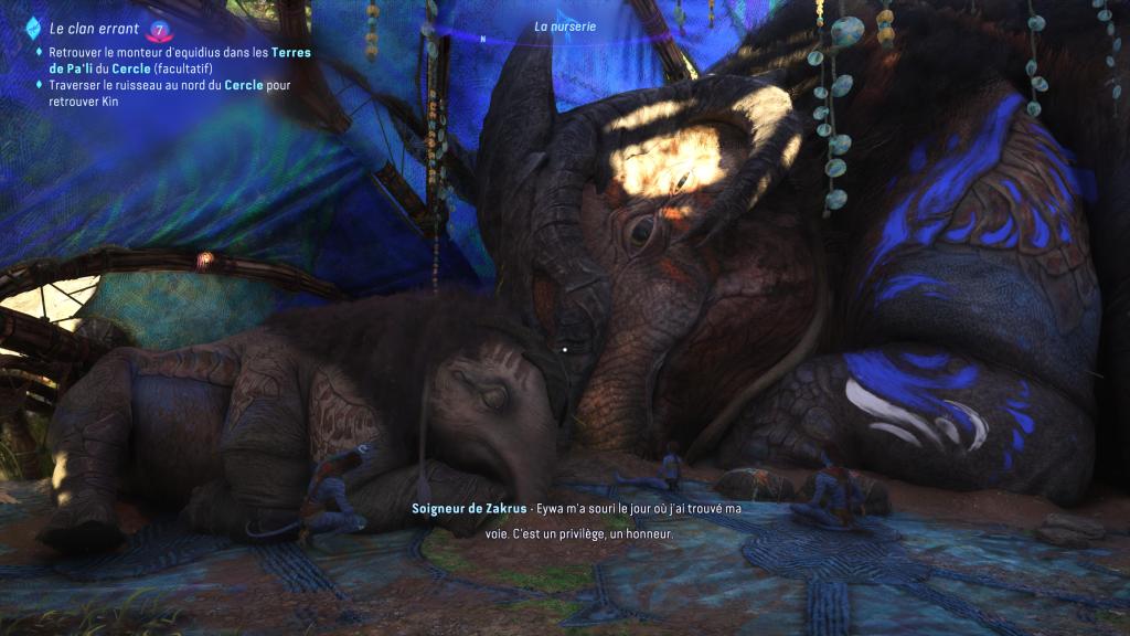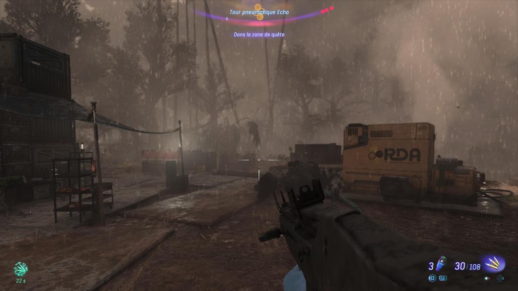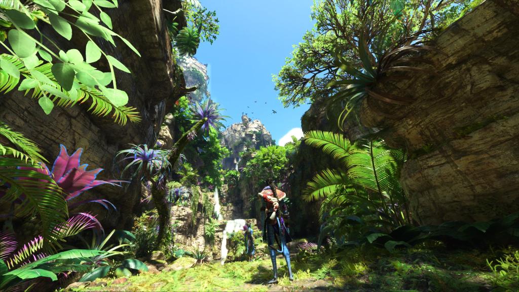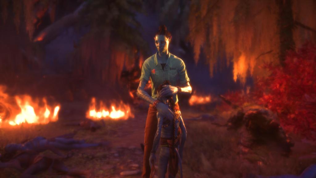 Le jeu est développé par Massive Entertainment, les papas de la licence The Division. Et il faut savoir qu’ils avaient bossé sur Far Cry 3, donc ils ne sont pas à leur premier coup d’essai pour un jeu en open-World narratif. Le jeu se passe entre le premier film et le second et s’intègre parfaitement. On y contrôle un Na’vi qui fait parti d’un groupe qui a été élevé par la RDA, loin de la vie sauvage. Un évènement se passe et vous vous retrouvez endormi pendant 15 ans. Après cette ellipse de plusieurs années, votre héros partira en quête de ses origines. Comme dans les films, les Na’vi sont les gentils et les humains ( sauf certains ) sont les grands méchants. Le scénario de ce jeu, comme pour les films est très basique, ne vous attendez pas à une écriture de dingue, ça tient clairement sur une feuille de PQ.
