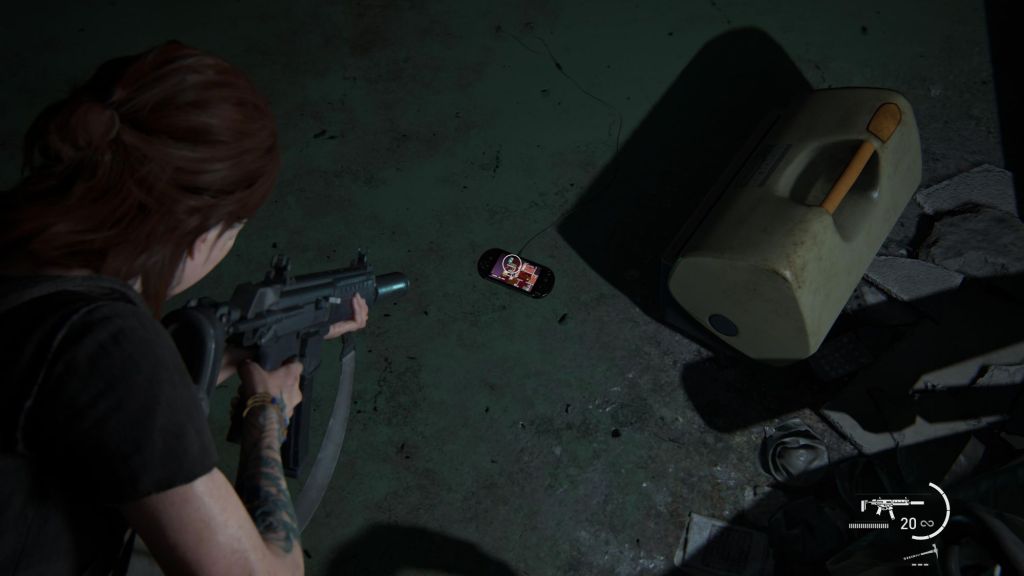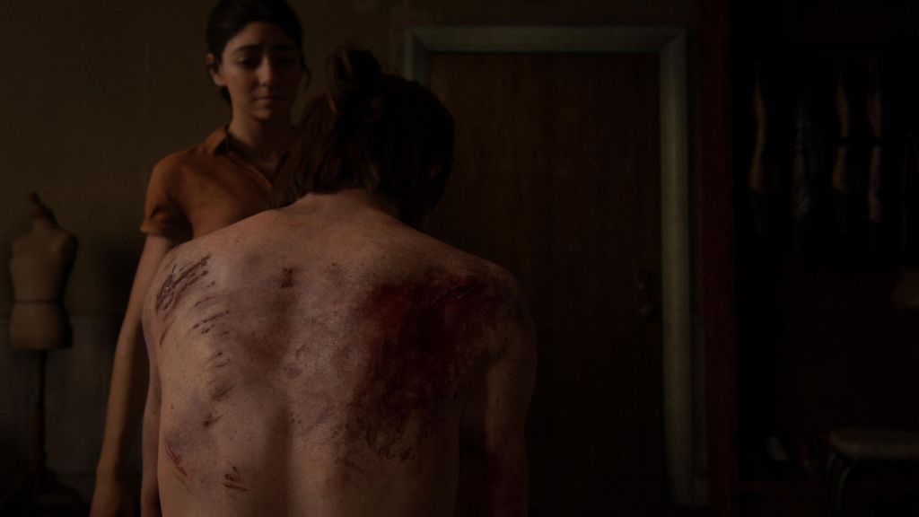 Pour le gameplay, ça se rapproche de l’épisode 1, mais en plus poussé. On peut se plaquer au sol, quand on prend une balle, on est projeté en arrière sur le dos et on peut malgré tout dégainer notre arme et tirer. Comme dans le premier, vous allez faire face à différents ennemis. Les contaminés de bases, des clakers dans différentes versions, les WOLF et les Scars. L’infiltration est encore plus au rendez-vous que dans TLOU1. Les hautes herbes font leur arrivées, la possibilité de vous cachez sous les véhicules, de passer rapidement dans d’épaisses crevasses murales, bref tout pour donner du rythme à des affrontements intenses. Entre les deux protagonistes, il y a une vraie différence. Ellie est une fille au physique chétif, contrairement à Abby et son physique de catcheuse qui ressemble drôlement à Amélie Mauresmo. Qui dit différence physique, dit clairement une maniabilité différente. Ellie étant beaucoup plus fragile, elle est moins résistante et donc demandera plus d’utiliser l’infiltration. Alors qu’Abby avec son physique avantageux, permet plus le contact car elle envoie de vraies patates de forain et elle utilise un arsenal plus nerveux. Même si Ellie n’a pas à rougir niveau armes. Elle dispose de deux pistolets différents, un fusil à pompe, un lance flamme etc. Bref de quoi bien démolir quelques gueules. Tout comme dans le premier The last of us, il sera possible d’améliorer vos armes mais aussi d’améliorer les compétences de vos personnages. Grosse nouveauté de la version PS5, c’est l’utilisation de la DualSense, quand on tire à l’arc, on a une bonne résistance au niveau des gâchettes et quand il pleut, on sent bien la sensation de pluie. Après ce n’est guère folichon, mais c’est sympatoche.