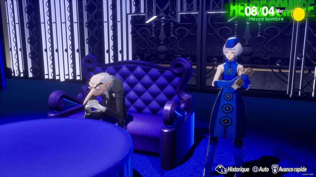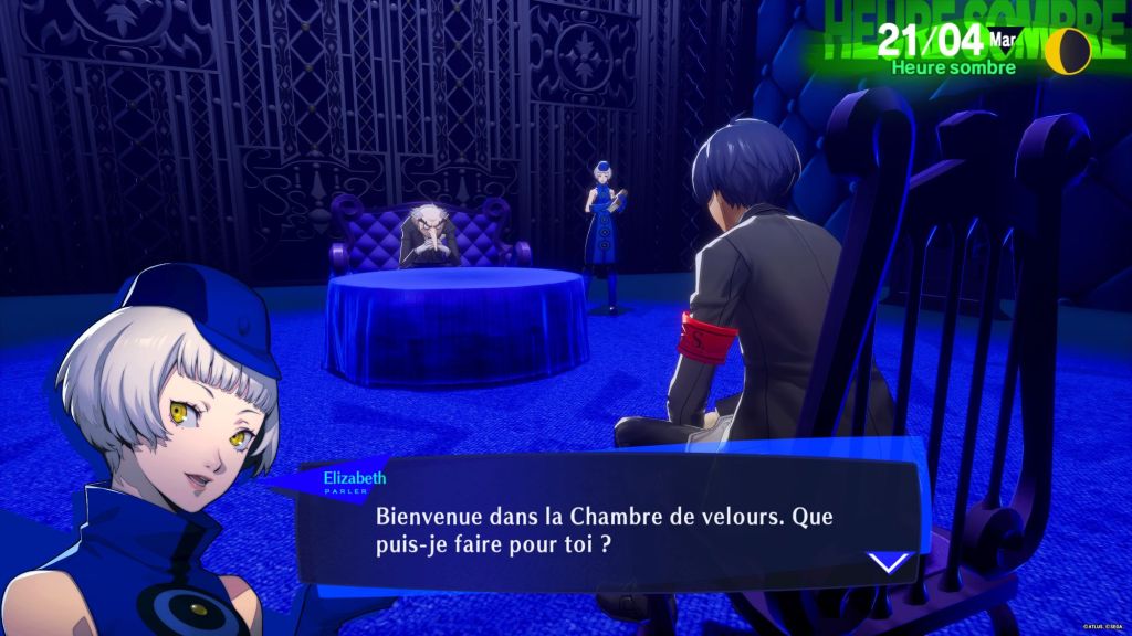 Je vous ai déjà dit plus haut que vous pouviez faire apparaître une Personae lors de vos combats, mais votre personnage aura également la capacité d’en posséder plusieurs. En récompense de vos combats dans le tartare notamment. Et vous pourrez aussi en allant dans la Velvet Room, la chambre de velours en bon Français, discuter avec Igor et son assistante Elizabeth. Ces deux importantes personnes ont la tâche de vous aider dans votre ascension en fusionnant par exemple vos Personas pour en avoir de plus puissantes. Une aubaine donc, pour devenir un redoutable adversaire lors de vos pérégrinations dans le Tartare. Vous gagnerez aussi bons nombres d’objets de toutes sortes comme des soins, d’armes, d’armures ou de babioles que vous pourrez revendre pour augmenter votre pactole.