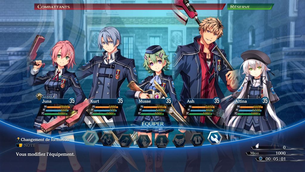 Comme d’habitude, on commence par un point sur l’histoire. Dans un souci de compréhension globale, sachez que l’ensemble des jeux « Trails » se suivent réellement et sont donc tous imbriqués dans un même univers. Ce qui implique que l’on y retrouve bon nombres de personnages qui se croisent lors des différents jeux. La Saga, puisqu’on peux bien la nommer comme cela, est extrêmement riche et complexe. Je préfère tout de même vous le signaler car sinon vous risquez de vous y perdre. Cette compilation regroupe les épisodes 3 et 4 qui se déroulent juste avant The Legend of Heroes : Trails into Reverie. Alors même si les développeurs ont prévu un petit récapitulatif pour résumer les deux épisodes précédents, ce n’est pas vraiment la panacée. Mieux vaut avoir joué à l’ensemble des jeux et dans l’ordre pour être sûr de ne rien rater. Vous voilà prévenus. Bref maintenant que c’est dit revenons sur l’histoire de The Legend Of Heroes Trails Of Cold Steel III. On retrouve le personnage de Rean Schwarzer, héros de la Guerre Civile, qui grâce à ses exploits se voit offrir un poste d’instructeur à l’académie militaire de Thors, plus précisément sur le campus numéro 2. Il va y retrouver de vieilles connaissances, elles aussi dans l’équipe d’encadrement et même dans la plus haute fonction de l’école. Notre cher Rean se voit donc attribuer la direction de la fameuse classe VII, nouvelle version, une unité d’élite que l’on envoie souvent sur le terrain. Les trois élèves qui la constituent sont Juna Crawford membre de l’Académie de police de Crossbell, Kurt Vander membre d’une famille tombée en disgrâce auprès de l’Empereur et Altina Orion ex-agent de la division du renseignement. Tout ce petit monde va donc apprendre à travailler ensemble pour mener à bien les sombres desseins qui les attendent.