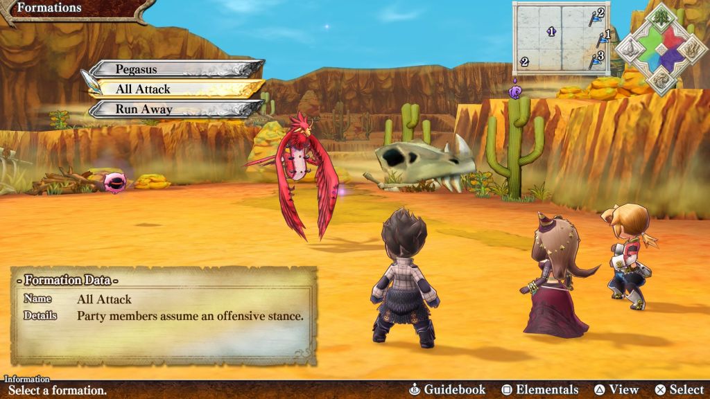 Et plus vous utiliserez une arme ou un sort en particulier et plus celui-ci augmentera en puissance. Jusqu’à obtenir pour les sorts de nouvelles capacités. Cela nous pousse donc à user beaucoup plus souvent de nos attaques préférés. En tout cas pour ma part c’est ce que j’ai fait. Vous pourrez aussi trouver bon nombre de coffres cachés dans des recoins de la carte, mais aussi des ruines et des stèles chargées d’histoire. L’exploration est le maître mot de ce Legend Of Legacy. Le monde d’Avalon est globalement agréable graphiquement parlant, c’est très kawaii. On reste sur du RPG d’époque quoi, évidemment il ne faut pas le comparer aux mastodontes d’aujourd’hui qui sont, il faut bien le dire graphiquement incroyables. Mais ce côté nostalgique est le bienvenue. Après et comme je vous le disais précédemment, le manque d’arbres de compétences enlève le côté gestion de l’expérience, cher aux joueurs du genre, et j’ai trouvé que cela était dommageable sur l’ensemble. De plus la difficulté est très mal dosée, vous pouvez passer d’un groupe d’ennemis ultra facile, puis un autre quasi imbattable et cela dans la même zone. C’est assez déroutant. Pour information vos points de vie seront entièrement restaurés entre chaque combat mais si par malheur un de vos personnages devait succomber, son nombre total de point de vie sera diminué. Pour le remettre à son niveau normal il faudra retourner à Initium. Oui je sais cela peut être assez fastidieux par moment.