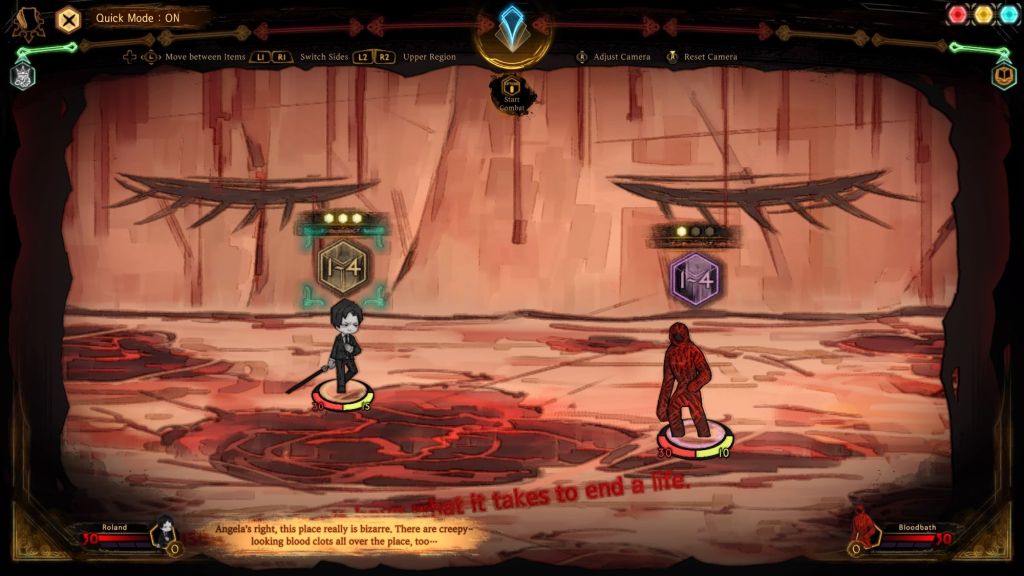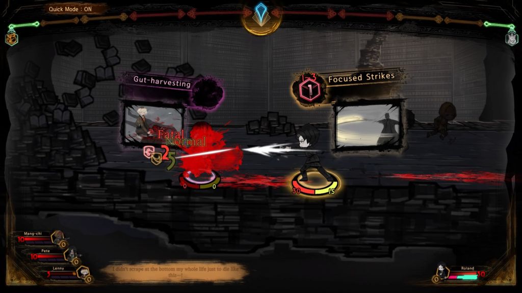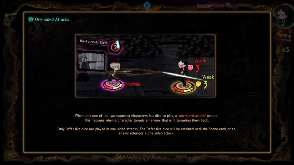 Côté gameplay, et comme je vous l’expliquais juste avant, ne vous attendez pas à de l’action non stop, ici vous allez faire fonctionner vos neurones et tenter de choisir au mieux quelle stratégie à adopter. En effet avant de vous lancer à corps perdu dans la mêlée, il faudra étudier au mieux les forces et les faiblesses de vos adversaires pour utiliser à bon escient les pages à votre disposition. Les combats se déroulent au tour par tour. Beaucoup d’options s’offrent à vous et chaque capacités disponibles ne sera pas forcément adaptée à tel ou tel personnage ou situation. C’est ce qui fait la richesse de ce jeu. Chaque ennemi que vous batterez, enrichira votre deck et vous permettra peut-être de vaincre le prochain adversaire. Pour ce qui est de l’interface, elle est très (trop) riche et il n’est pas aisé de s’y retrouver. J’ai d’ailleurs relativement bien galéré pour m’y retrouver et enfin comprendre comment utiliser les onglets disséminés aux quatre coins de l’écran. De plus la difficulté est très mal dosée, on passe plusieurs combats hyper facile pour soudainement buter sur un ennemi sans aucune raison. C’est vraiment dommage. Chaque scène d’affrontements est entrecoupée de dialogues des différents protagonistes à la façon d’un visual novel. Le lore est fourni et vous apprendrez beaucoup de choses lors de ces échanges. J’aime bien les jeux de stratégie d’habitude mais là je dois bien avouer que que j’ai trouver l’ensemble assez indigeste. Il y a énormément d’informations et surtout la disposition globale n’est clairement pas optimale. Et puis cet univers bibliothèque glauque c’est pas vraiment ma tasse de thé. Pourtant ce Library Of Ruina possède de belles qualités car graphiquement c’est propre et ultra détaillé. Chaque personnage est intéressant et côté sonore c’est une belle réussite. Les doublages sont très bons et les musiques qui nous accompagnent tout au long de l’aventure sont excellents. Je pense juste que l’atmosphère du jeu ne m’a pas conquis. Ça arrive et on ne peut pas tout aimer, il en faut pour tous les goûts.