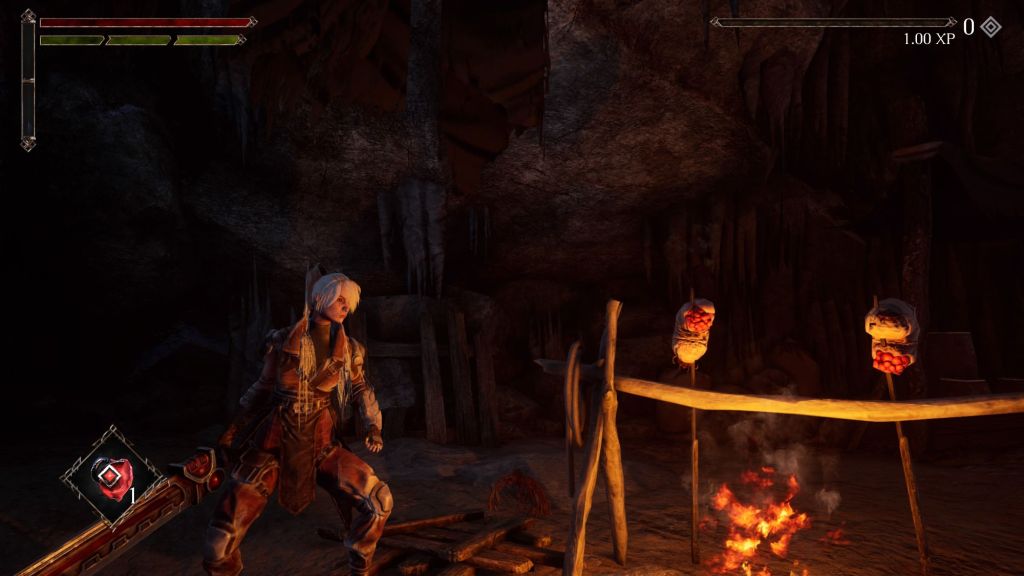 Autre point commun avec un Souls, à chaque autel que vous aurez visiter une première fois, vous aurez la possibilité de régénérer votre barre de vie en méditant, changer d’armes et même les modifier en appliquant des runes dessus. Vous pourrez aussi vous téléporter dans un hall des héros qui servira de hub central ou vous pourrez retrouver quelques PNJ qui amélioreront votre stuff et vous confieront d’autres missions à effectuer.