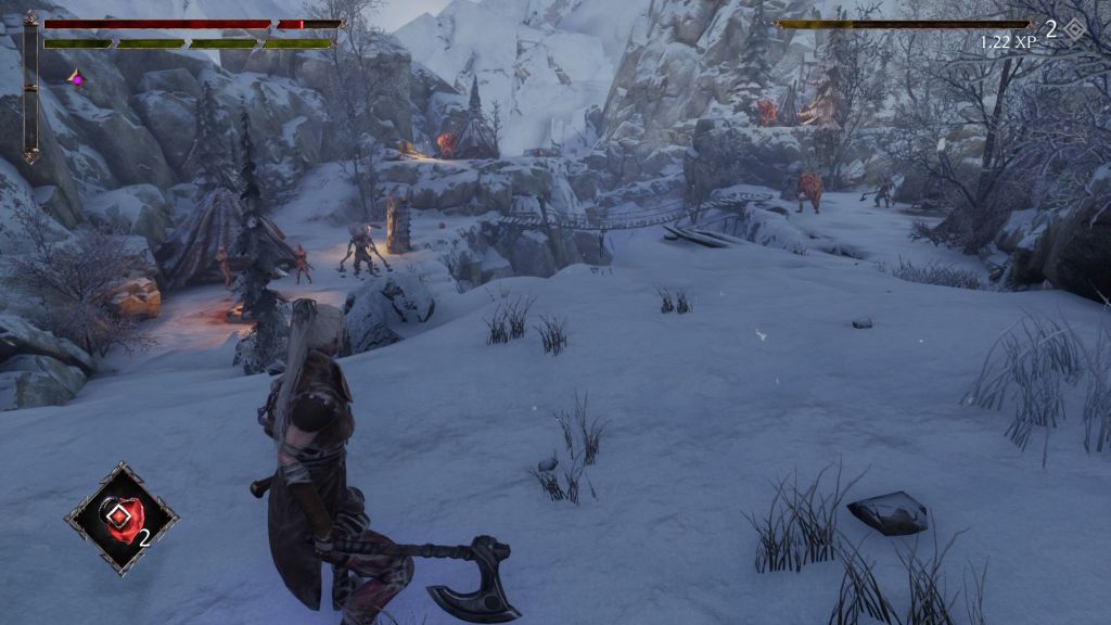 Côté gameplay maintenant, c’est relativement fluide et je n’ai ressenti aucun ralentissement lors de mes différentes sessions. C’est agréable et ça reste encore une fois dans la même veine que les autres jeux du genre. Je me répète sûrement mais c’est un Soul-Like et ça se sent en tout point de vue. Pour la bande son, elle colle parfaitement à l’ambiance du jeu et rajoute bien de l’intensité lors des combats de Boss. Ce sont d’ailleurs des passages épiques.