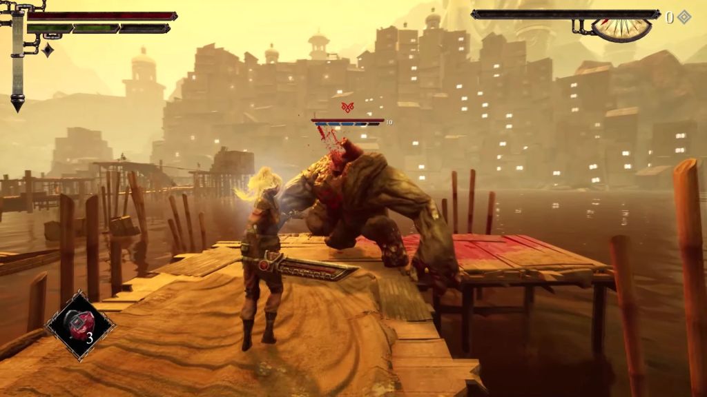 Vous aller vite vous rendre compte que les ennemis possèdent 2 barres de vie, celle du haut représente leurs HP (point de vie) et celle du dessous représente quant à elle leur équilibre qui une fois arrivée à zéro, expose au chancellement et à la possibilité de placer une attaque finale mortelle. Alors essayer de faire tomber rapidement cette seconde barre au plus vite pour vous débarrasser de votre adversaire. Il y a aussi une méthode plus sournoise qui consiste à attaquer votre ennemi dans son dos en s’approchant discrètement et de lui infliger des dégâts considérables voir même de le tuer directement selon sa nature. Étant un fan des jeux d’infiltration, je privilégie toujours ce genre d’approche. Ouais c’est trop bien les attaques en traître ! Malheureusement ce n’est pas possible la plupart du temps, alors misez surtout sur votre mobilité et votre esquive pour essayer de survivre et placer vos coups lorsque ça fait mal. Si vous faites cela, vous ne devriez pas à avoir de problème pour avancer dans l’aventure. D’ailleurs dans ce genre de jeux, l’esquive c’est la vie !
