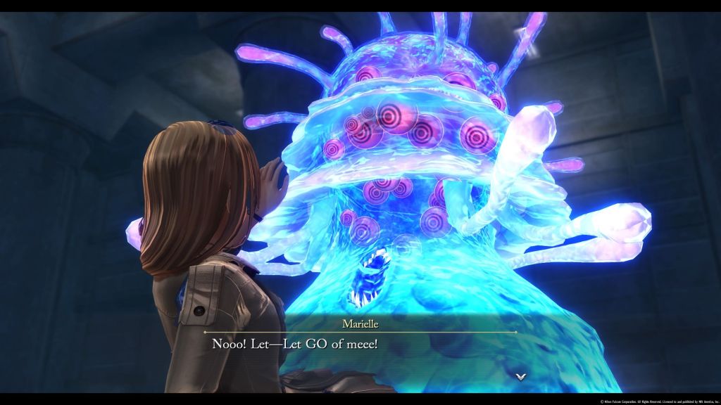 Le gameplay est relativement fluide et je n’ai eu aucun ralentissement lors de mon aventure. Les environnements sont plus riches grâce au nouveau moteur graphique, un bon point également. Cela fait du bien de remettre un peu au goût du jour une saga qui a débuté il y a plus de vingt ans. L’autre nouveauté et pas des moindres c’est la possibilité de choisir le combat en temps réel ou celui au tour par tour. Cela apporte un vrai plus et une dynamique intéressante à votre aventure. Vous pourrez switcher à loisir, sauf pour les combats de Boss, normal me direz-vous. Mais franchement pour éliminer les mobs random que vous verrez tout au long de votre chemin, c’est très agréable de pouvoir les éliminer rapidement sans passer par cette phase de tour par tour. Une fois que vous aurez un peu avancé dans l’histoire, vous pourrez visiter bon nombres d’endroits que ce soit en ville ou dans de vertes contrées bucoliques. Le bestiaire changera bien évidemment en fonction de l’endroit où vous vous trouverez. Vous pourrez également discuter avec les PNJ et certains vous donnerons des quêtes annexes. Au cours de votre aventure vous aurez aussi des choix scénaristiques à faire à la fin de quêtes. Ces choix moraux, sont basés sur votre aptitude à choisir des réponses qui obéissent ou non à la loi ou celle de rester impartial. Quoiqu’il en soit cela n’influencera pas l’histoire mais plutôt les récompenses que vous obtiendrez.