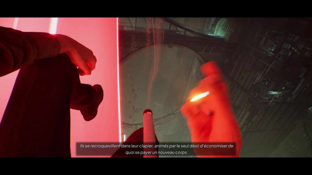 Dès les premières minutes, Nobody Wants to Die capte l’attention grâce à ses graphismes impressionnants. Les décors sont minutieusement détaillés, avec une esthétique qui oscille entre le futur et le passé. La ville mélange des idées du passé et du futur. Les effets de lumière et les textures contribuent à créer une ambiance oppressante et immersive. Chaque lieu visité par le joueur raconte une histoire, rendant l’exploration passionnante.