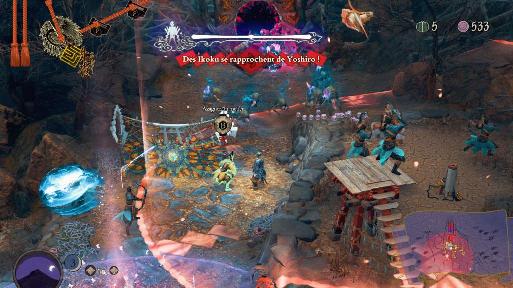 Pour ce qui est du gameplay en lui-même, c’est plutôt bien ficelé. Le côté lourd et compliqué auquel est associé en général les jeux tactique est ici complètement réinventer tout en gardant une base solide. On s’y retrouve très facilement et c’est presque naturellement que l’on effectue nos actions. Le fait que l’on puisse tourner à loisir tout autour de son personnage et cela en temps réel est un vrai plus. Il est vrai que cela peu aussi être un peu confus à certains moments, lors d’affrontements avec de nombreux ennemis, mais c’est assez anecdotique. Je n’ai pour ma part eu aucun gros bug lors de mon aventure. Je ne vous en ai pas encore parlé mais entre chaque zone de combat, vous pourrez également aller dans votre base. Une sorte de hub où vous pourrez améliorer vos villageois, équiper de nouveaux talismans mais aussi réparer certaines zones endommagées lors des affrontements et qui vous permettront d’être plus performant pour la suite de l’histoire. Bref un endroit à ne surtout pas négliger.