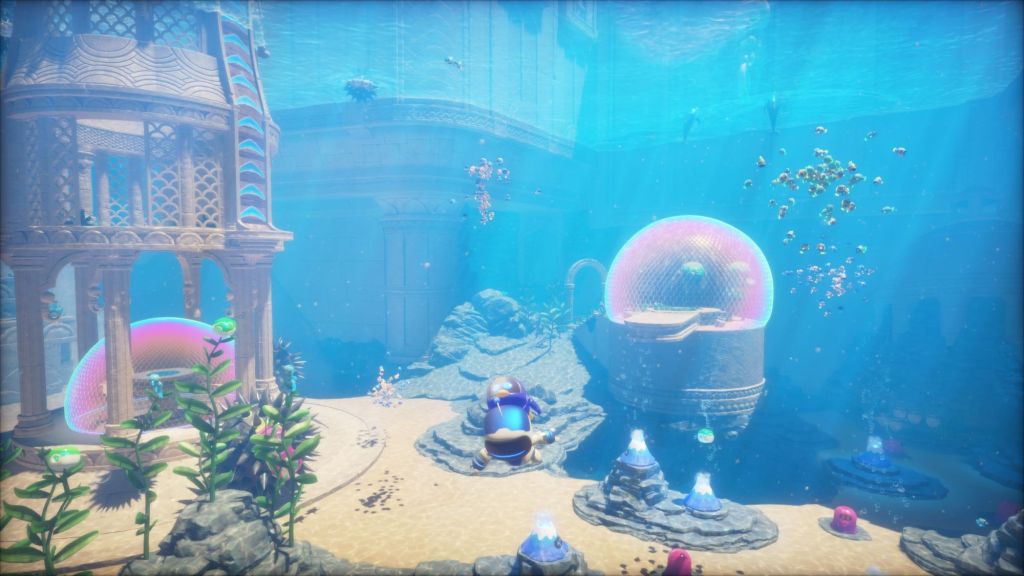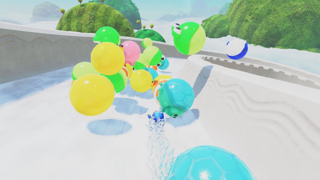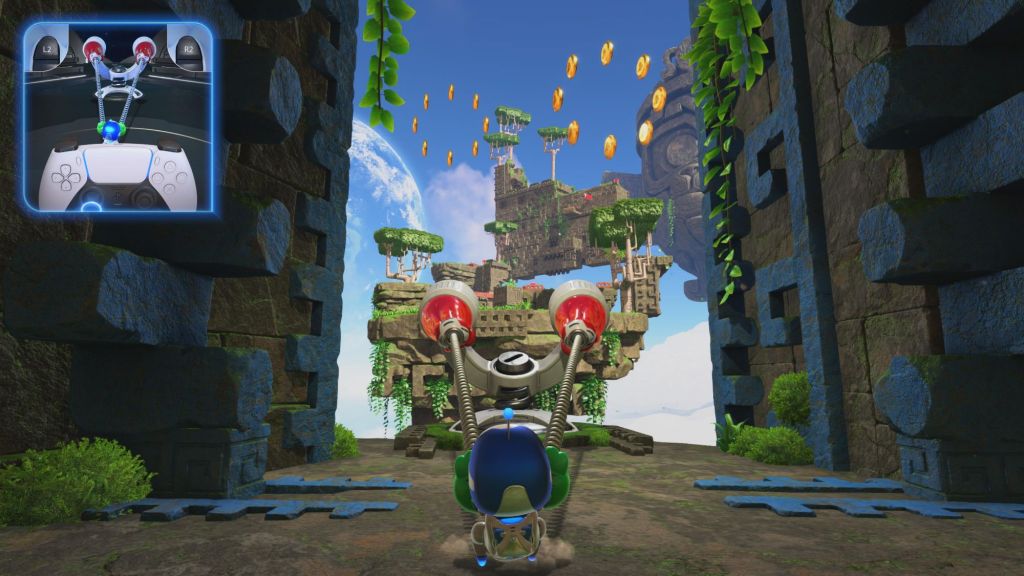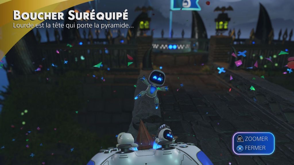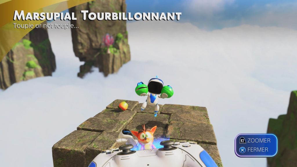 Le gameplay repose sur des mécaniques de plateformes classiques mais bien peaufinées. Chaque niveau est un mélange d’exploration, de résolution d’énigmes et de défis de plateformes. Comme pour Astro’s Playroom, la DualSense est clairement à l’honneur et toutes ses spécificités sont utilisées à la perfection. Les contrôles sont précis et répondent parfaitement, ce qui est essentiel pour un jeu de plateformes. Les niveaux sont construits de manière ingénieuse, avec une courbe de difficulté progressive. On trouve également des sections où le joueur doit utiliser le gyroscope de la manette, ajoutant une couche supplémentaire de variété au gameplay. Et l’utilisation de chaque gadget est vraiment très fun.