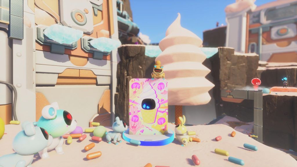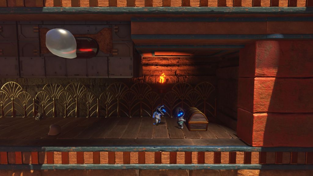 La durée de vie du jeu est dans la moyenne pour un jeu de plateformes. Comptez une dizaine d’heures pour terminer l’aventure principale, mais bien plus si vous souhaitez découvrir tous les secrets cachés dans les niveaux et sauver tous les amis d’Astro. D’ailleurs, on apprécie encore énormément les clins d’œil aux licences cultes qui sont venues briller sur toutes les générations de consoles de PlayStation. C’est toujours sympa de trouver des petits robots qui font penser à Kratos ou Solid Snake.