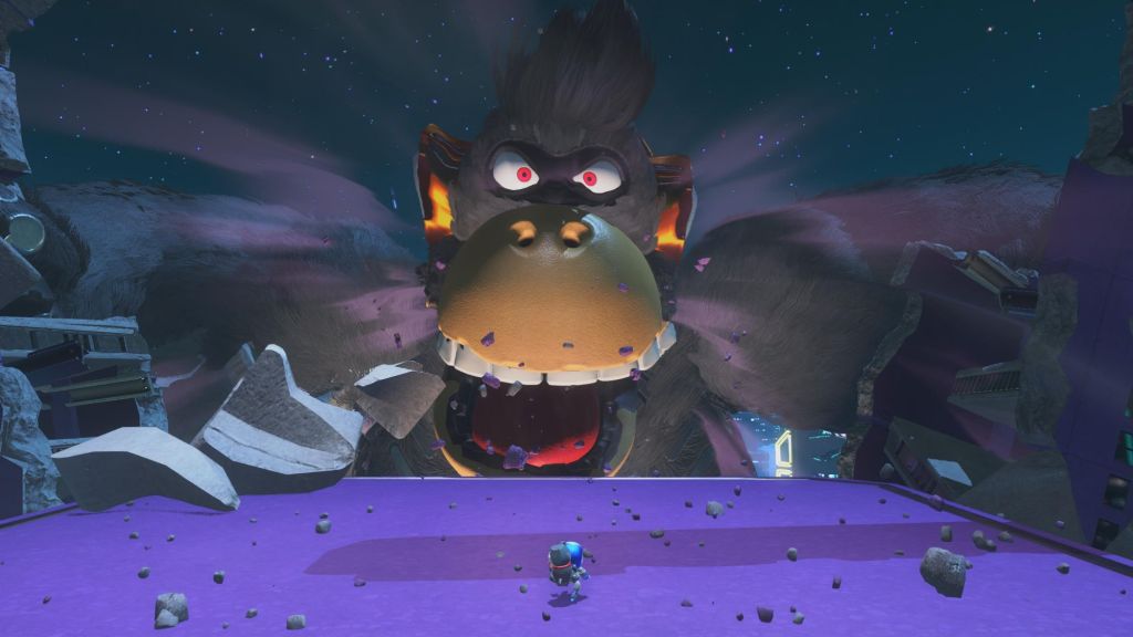 On n’est clairement pas sur un jeu avec un scénario de dingue, mais on n’a pas besoin de ça pour kiffer sur un titre de plateformes. En gros, Astro et ses amis vivaient la vie de rêve, jusqu’à l’attaque d’un gros vilain méchant. Tout le monde a survécu, mais tous les amis d’Astro sont éparpillés dans plusieurs galaxies. Mais pas de soucis pour eux, notre petit Robot va partir à leur secours.