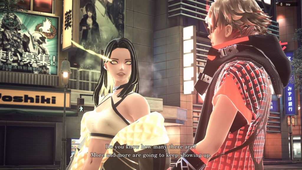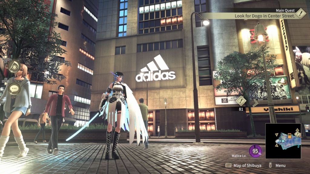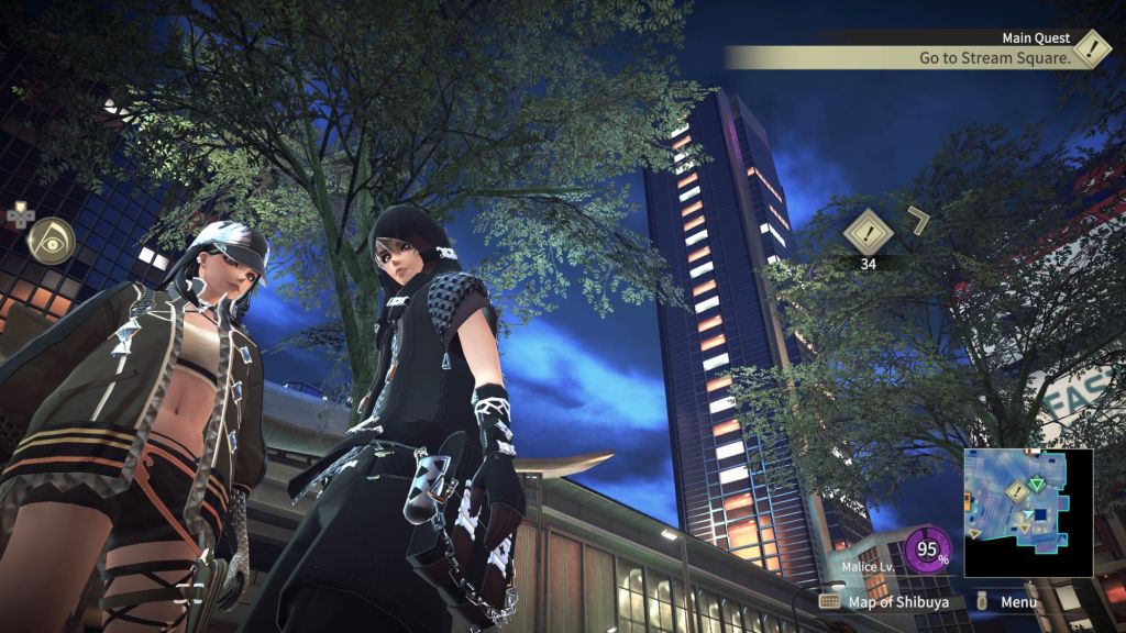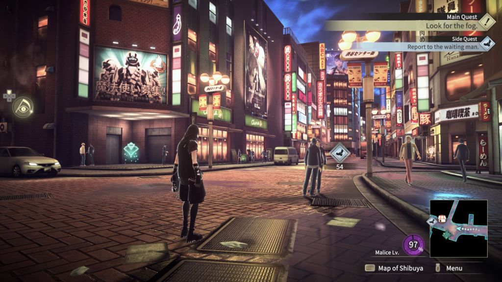 Le décor est planté, vous pourrez donc déambuler à loisir dans des quartiers mythiques de la capitale Japonaise comme Shibuya. Enfin quand je dis à loisir, ce n’est pas non plus un Open World, il faudra tout de même suivre l’histoire pour débloquer plus de possibilités. Mais j’y reviendrai plus tard. Nous allons alterner au fur et à mesure de l’avancée dans l’histoire entre les deux personnages principaux que sont Sari et Marin. Un peu comme le Yin et Yang, ces deux personnalités sont vraiment différentes dans leurs visions de ce monde mais dans la pratique, ils se ressemblent beaucoup. La magie étant bien évidemment leur point commun principal. Ha oui petite précision avant que j’oublie et qui a quand même son importance, le jeu est entièrement en japonais sous-titré anglais.