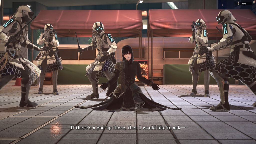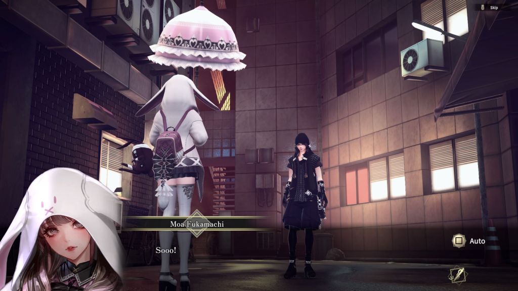 Graphiquement parlant et comme vous avez pû déjà le voir sur les quelques clichés pris in-game, c’est plutôt agréable à l’oeil sans non plus être transcendant. On va dire que l’on reste dans les standards auxquels FuRyu nous a habitué. Ils nous avaient sorti il y a quelques mois le jeu Crymachina que je vous avais d’ailleurs testé (aller jeter un oeil sur l’article si ce n’est pas déjà fait ). Pour en revenir à nos moutons, les décors sont plutôt variés avec pas mal d’urbain, normal pour un jeu qui se passe dans une grande ville, mais aussi de grands espaces puisque vous pourrez aussi déambuler dans des forêts et des déserts. Les personnages secondaires sont également bien cools que ce soit du côté des gentils ou des méchants. Même si pour une fois j’ai préféré le charisme et le style de l’équipe de Marin. Les acolytes de Sari sont beaucoup plus stéréotypés et fades. M’enfin bref ce n’est que mon impression. Franchement comment ne pas kiffer l’attitude de Moa Fukamachi, la cosplayeuse lapin trop kawaii.