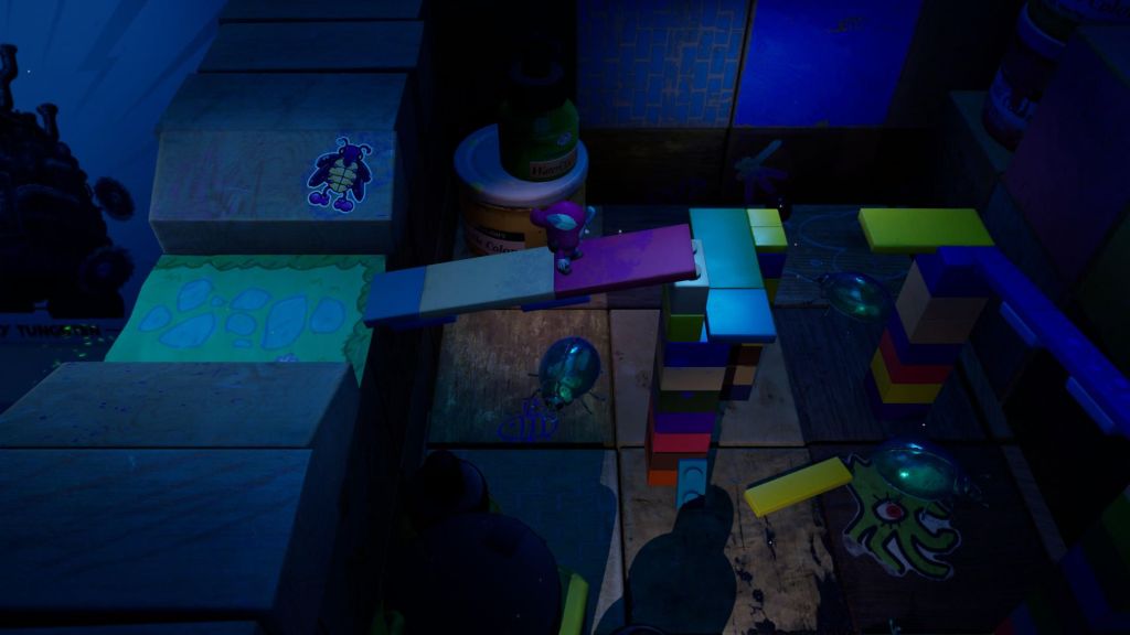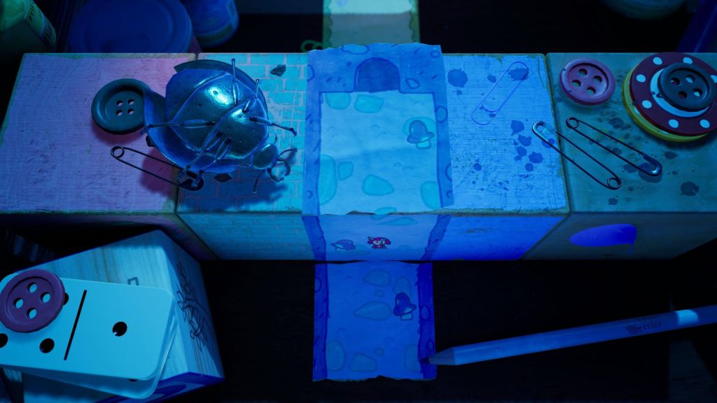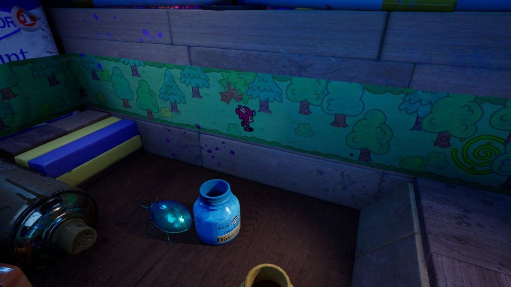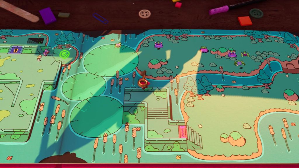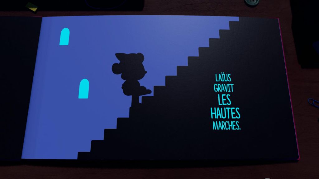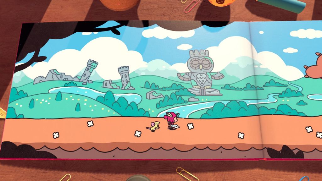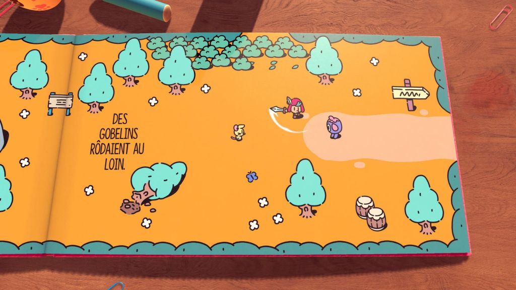 Le jeu brille particulièrement grâce à sa direction artistique exceptionnelle. L’univers en 2D, où tout semble dessiné à la main, s’inspire des livres illustrés pour enfants, avec des couleurs vives et des détails adorables. Puis, sans crier gare, le joueur est propulsé dans un monde 3D magnifique. La transition entre ces deux dimensions est fluide et naturelle, offrant un sentiment de magie à chaque instant. Chaque recoin est une véritable œuvre d’art, et l’attention portée aux détails, que ce soit dans le livre ou en dehors, est tout simplement remarquable.