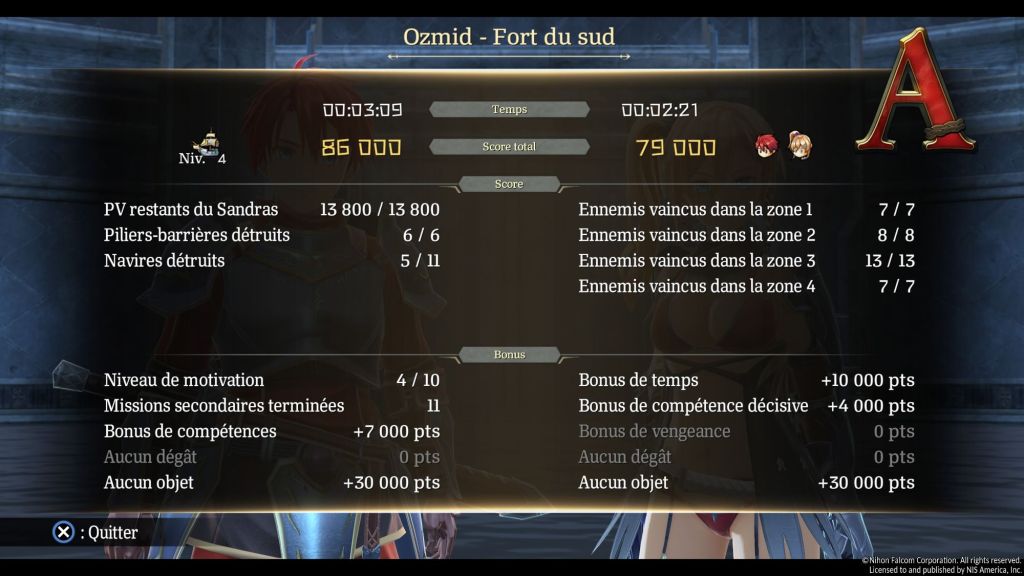 Pour conclure je dirais que ce Ys X Nordics est un bon JRPG. L’histoire est vraiment intéressante et les personnages sont attachants. Graphiquement c’est plutôt joli et le gameplay même s’il souffre de quelques lacunes principalement dans les phases de sauts, il est assez convaincant. J’ai pour ma part passer un excellent moment en compagnie de Karja et d’Adol.