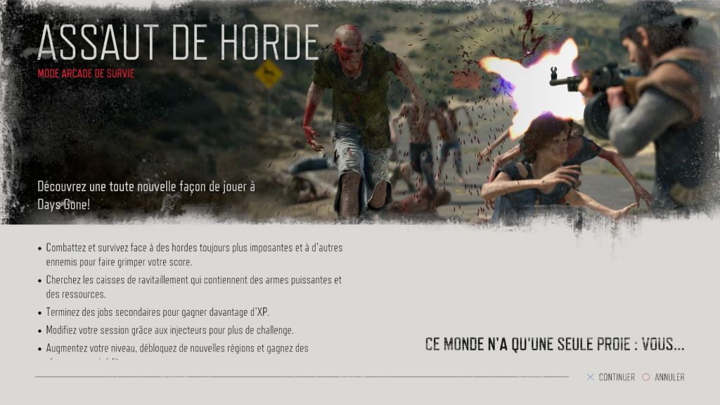 Franchement le jeu est plaisant, parcourir en moto les paysages, arriver dans des zones infestées de zombies, réfléchir à une technique pour tous les tuer sans se faire bouffer. C’est à mes yeux, la base d’un jeu post-apo et concernant ça, le jeu fait vraiment le café. Je conseille ce jeu à ceux qui ont vraiment aimé The Last of us et qui aime Daryl de The Walking Dead car l’inspiration est vraiment présente. Et cette version remastered est la version ultime, même si les nouveautés sont légères comme le mode Assaut de Horde, on a enfin une version du jeu qui tourne parfaitement sur console de salon. Même si le titre ressemble toujours à un jeu PS3 avec des graphismes d’un jeu PS4 mais qui tourne comme un jeu PS5.