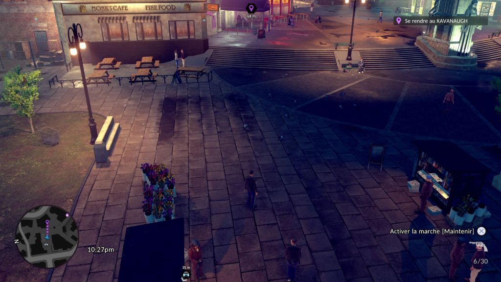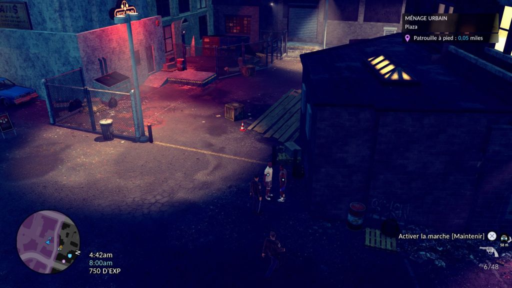 Dès les premières secondes, le jeu plante son décor avec brio, une ville sombre, poisseuse, vibrante de vie, où chaque coin de rue semble avoir son propre récit. Grâce à une direction artistique stylisée mais ancrée dans une certaine forme de réalisme urbain, on a l’impression de marcher dans un épisode de Miami Vice, manette en main. Le cycle jour/nuit, la météo dynamique, et les interventions radio en fond participent à cette immersion totale.