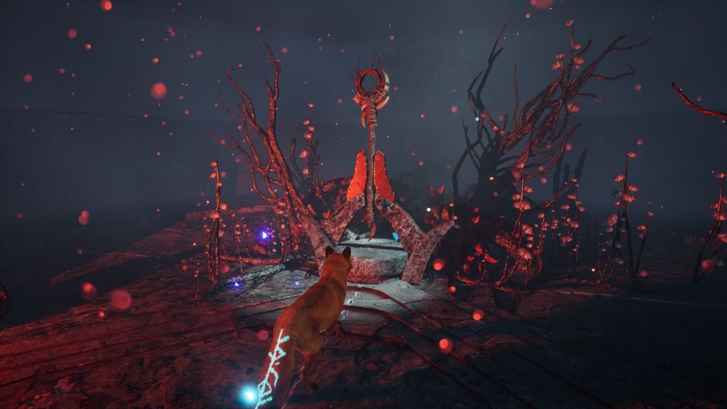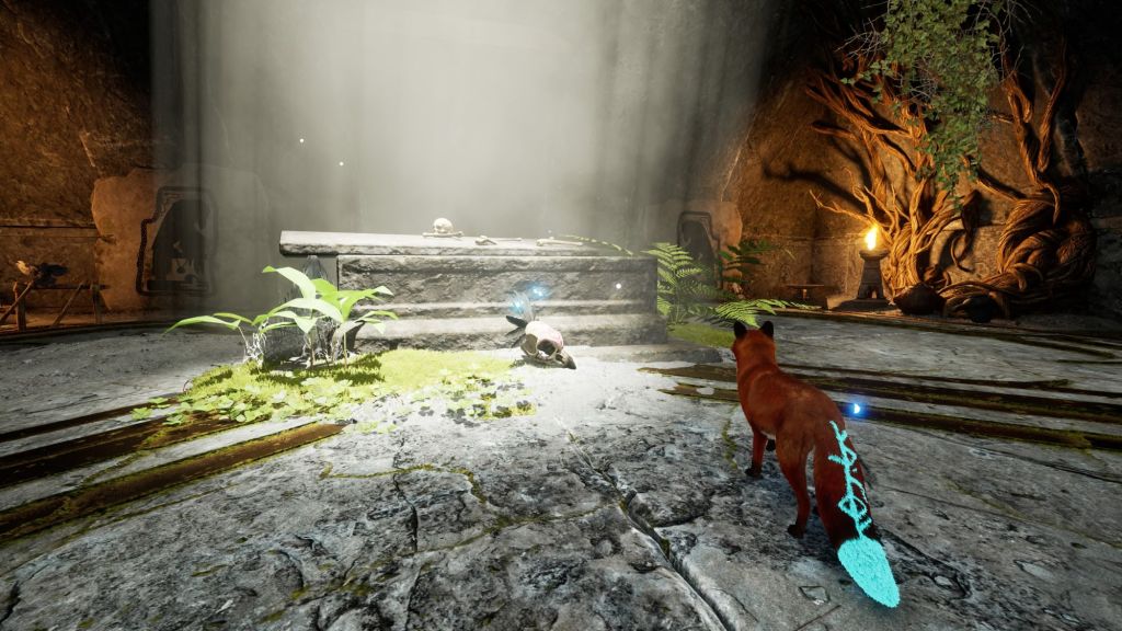 Concernant le gameplay, vous pourrez donc faire tout ce qu’un renard peut faire. Soit marcher, courir, se baisser, sauter et glapir (oui c’est comme cela que l’on dit lorsque qu’un renard donne de la voix.. ). Comme je vous le disais plus haut, au fur et à mesure, votre panel d’options s’enrichira lorsque vous trouverez des runes à équiper. De nouveaux pouvoirs s’ajouteront à votre stuff au fil de l’histoire comme la possibilité de résister aux flammes par exemple. C’est d’ailleurs le mantra centrale de ce jeu, la spiritualité !