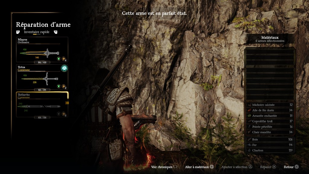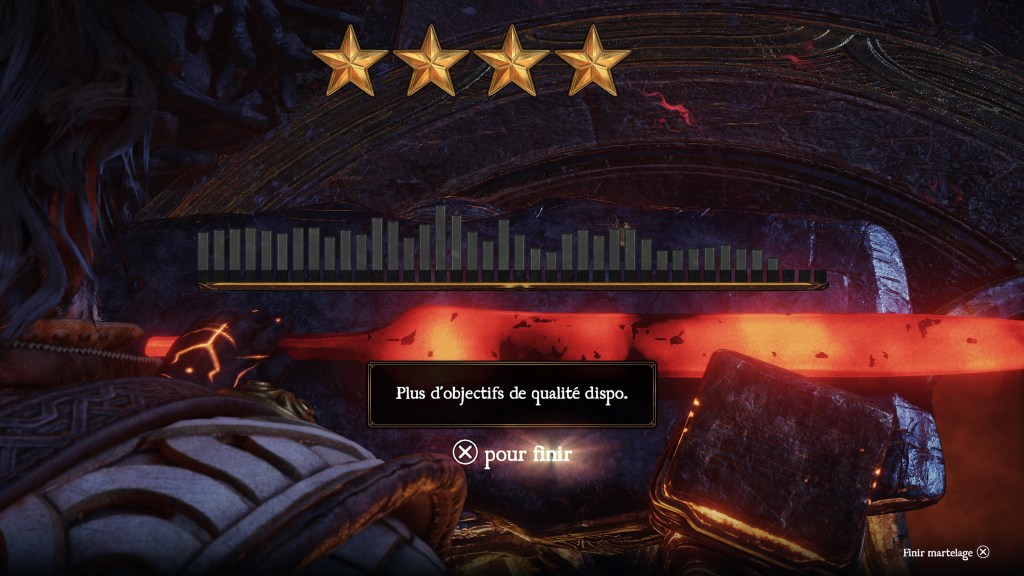 Alors véritable chef-d’œuvre ou ratage complet ?Je dirais ni l’un, ni l’autre. La proposition de départ était plutôt alléchante mais dans les faits c’est plutôt mitigé. Il y a de bonnes choses comme le fait de forger ses propres armes et un environnement visuel accrocheur. Mais c’est contrebalancer par une difficulté accrue et une redondance dans la course aux ressources pour fabriquer nos armes qui cassent beaucoup trop vite. J’ai vraiment eu l’impression de ne faire que ça tout au long du jeu. Pourtant on y retourne et le côté addictif est bien présent. C’est là tout le dilemme. Je suis un joueur habitué à ce genre de jeux, j’ai fait les Souls, Elden Ring, Lies of Pi, ect…Donc la difficulté ce n’est pas ce qui me rebute et j’aime bien mais dans ce Blades of Fire, il y a ce je ne sais quoi qui fait que j’accroche pas plus que ça. Alors est ce que je vous le recommande ? Je suis circonspect, je dirais qu’il peut trouver son public car il propose des choses sympas mais que pour ma part je n’ai pas accroché et que le fait de perdre ses armes aussi vite m’a fait perdre le fil… Ni bon, ni mauvais, à vous de voir si l’apostolat de base vous fait vibrer.