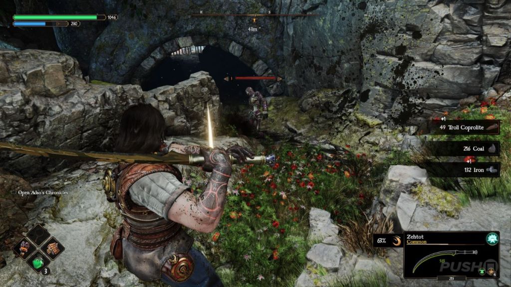 Mais comme d’habitude nous allons nous imprégner de cet univers avec son histoire. Dans ce monde médiéval, l’acier, matière première des armes, s’est subitement transformée en pierre. Nous allons incarner Aran, un forgeron-guerrier mystérieux plutôt balèze. L’introduction du jeu nous lance dans l’aventure où nous allons devoir secourir en vain un ancien ami qui venait nous rendre visite. Il était accompagné d’un jeune disciple magicien qui nous secondera dans notre périple par la suite. Je dois bien vous avouer que la trame principale est assez cryptique malgré un flot constant d’informations tout au long du jeu. Ça parle beaucoup mais on arrive pas forcément à rentrer dans le mood, du moins c’est ce que j’ai ressenti. Enfin bref, si le jeu est bon, pourquoi pas… Ce n’est pas parce que le scénario est décousu, que cela va nous empêcher de nous amuser hein ?