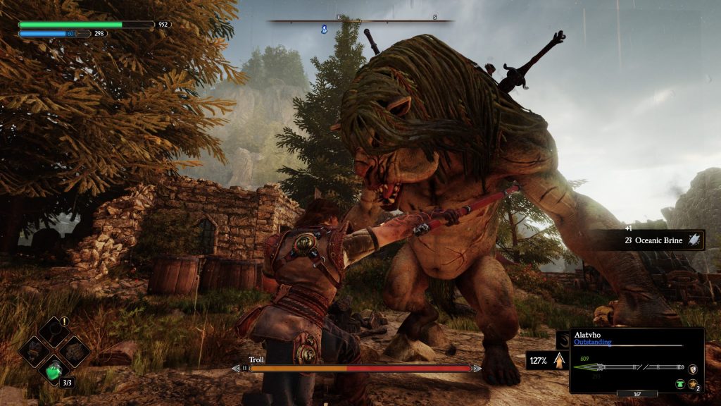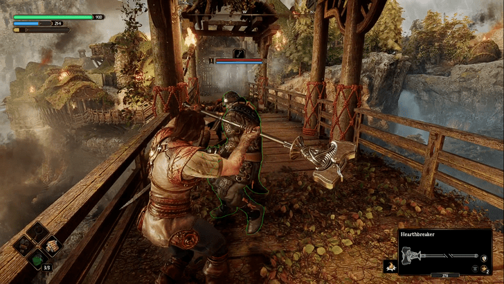 Ce qui saute aux yeux, dès les premières minutes de jeu, c’est sans nul doute, la beauté des graphismes. Ce Blades of Fire est vraiment joli. Les textures sont propres, éclatantes de couleurs et aucun bug à l’horizon. Franchement le travail des développeurs est très réussi. On se surprend à admirer le paysage et à visiter les lieux, tel des touristes en goguette. Même si vous vous en doutez bien, les lieux sont truffés d’ennemis, prêt à vous trucider sans le moindre état d’âme. Car oui, le monde est joli mais comme dans tous les Souls-like, la moindre erreur vous sera fatale. Que se soit par des protagonistes belliqueux ou pire encore à cause d’une chute malencontreuse dans un trou…