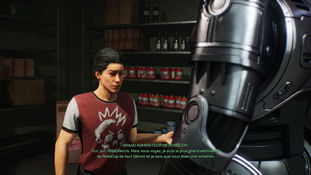 L’OmniTower offre une nouvelle direction artistique qui tranche avec le Detroit sale et organique du jeu de base. Le résultat visuel est propre, bien que le moteur montre quelques signes de fatigue. Côté son, Peter Weller est toujours de la partie, et son interprétation donne au personnage cette gravité unique. La bande-son est discrète mais soutient parfaitement l’ambiance. Le tout est cohérent, respectueux de la licence, et parfaitement immersif.