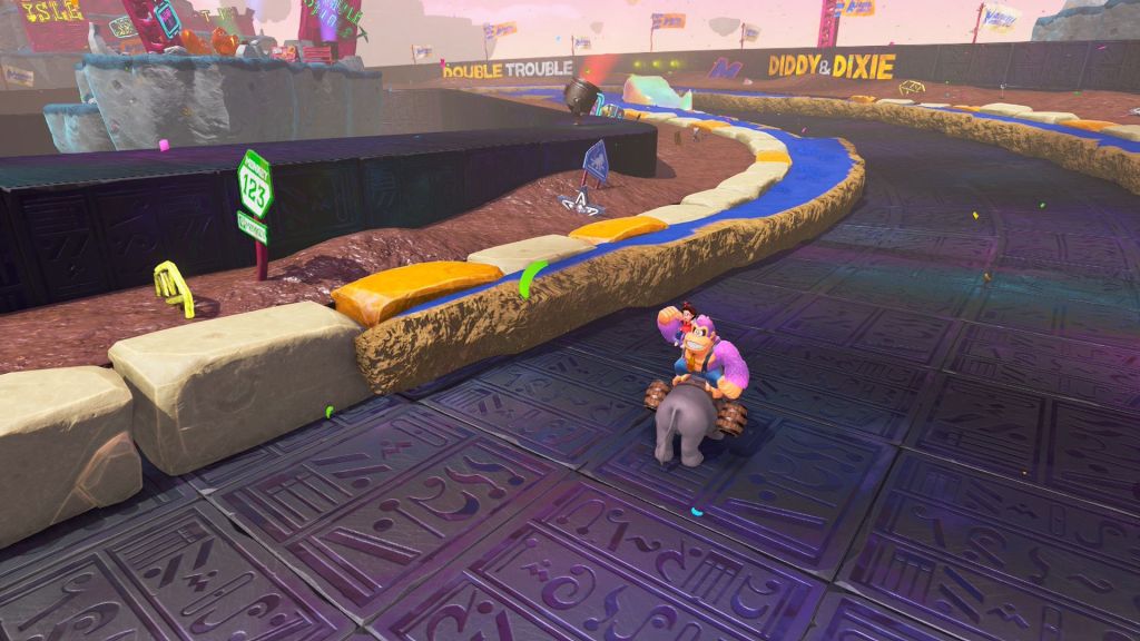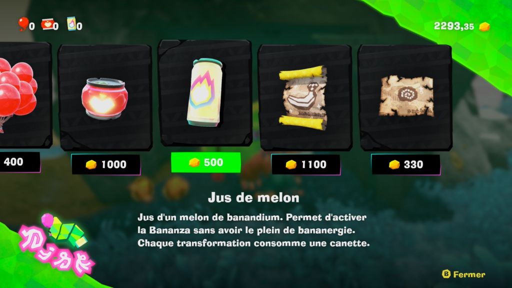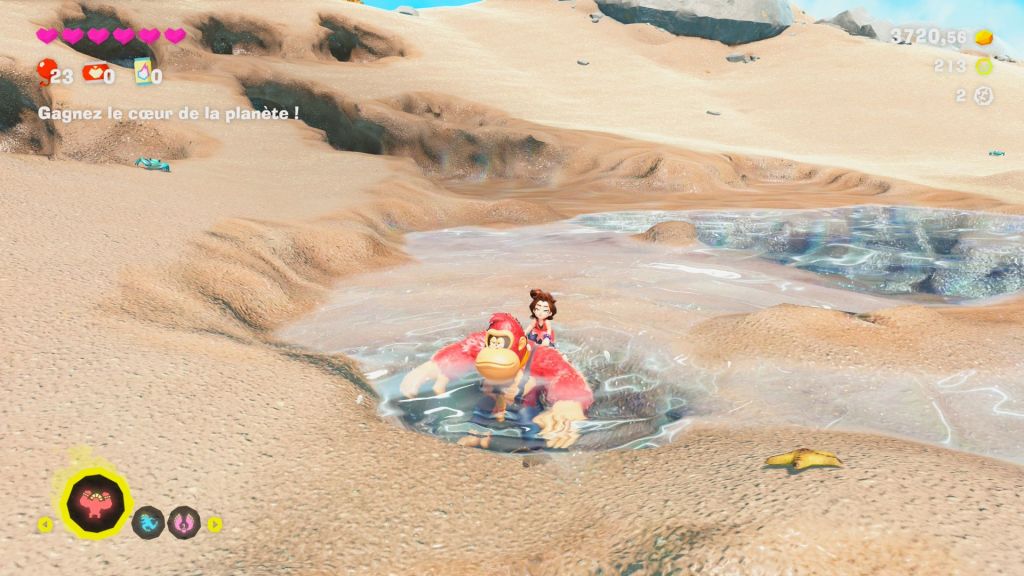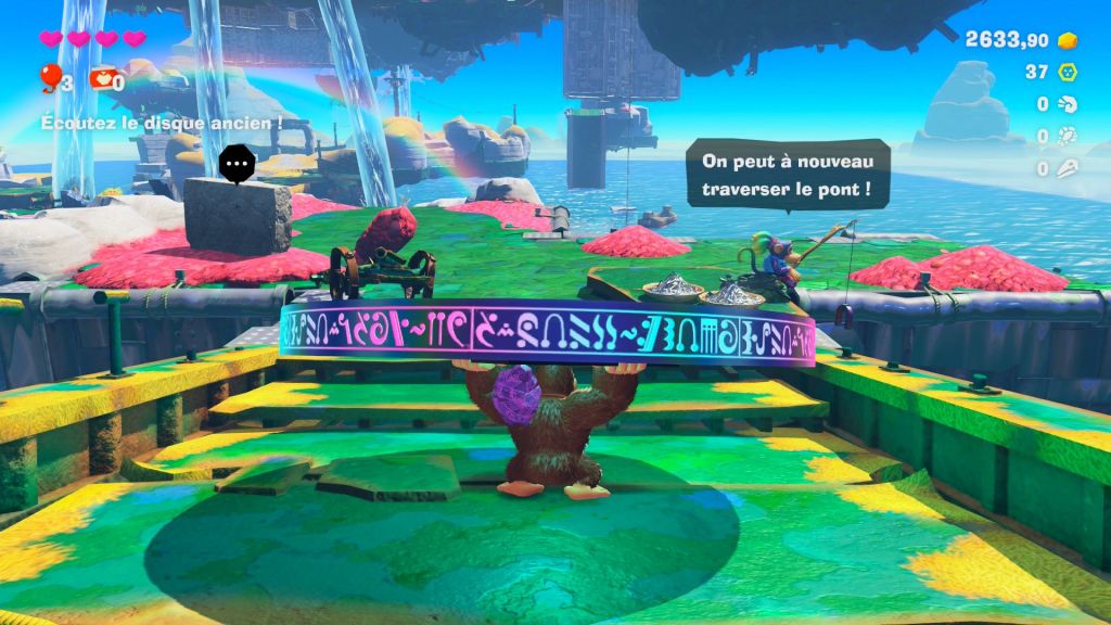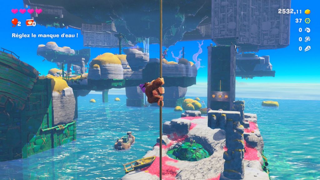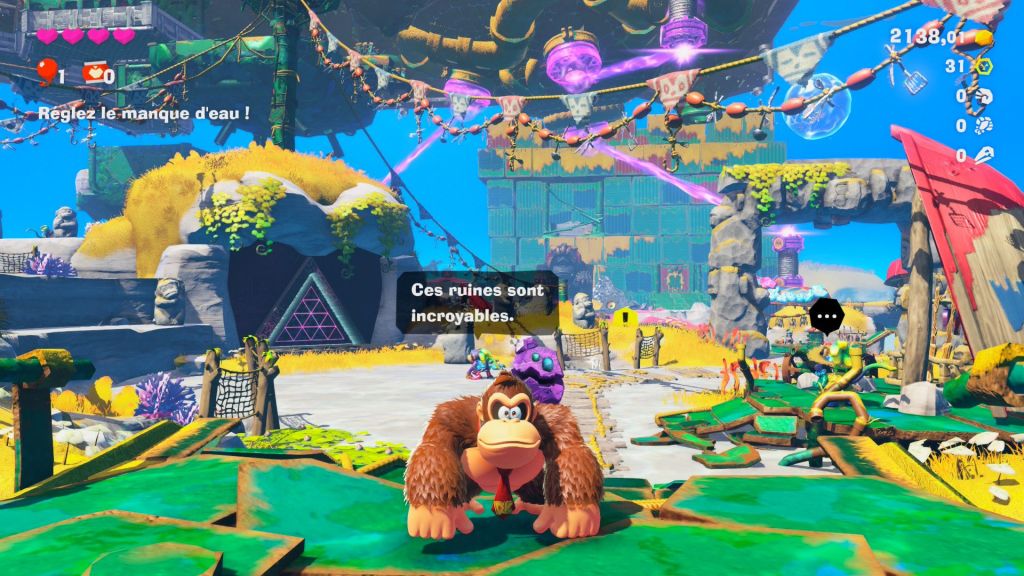 La Switch 2 permet heureusement au jeu d’être fluide dans l’ensemble, même si quelques baisses de framerate se font sentir dans les zones plus chargées, surtout quand on essaie de détruire toute la map ou pire quand on ouvre la carte, oui oui, le jeu ram quand on ouvre la carte… Mais ça ne suffit pas à sauver une direction artistique plate, une musique oubliable, et une absence de moments marquants. Même techniquement, Bananza reste tiède.