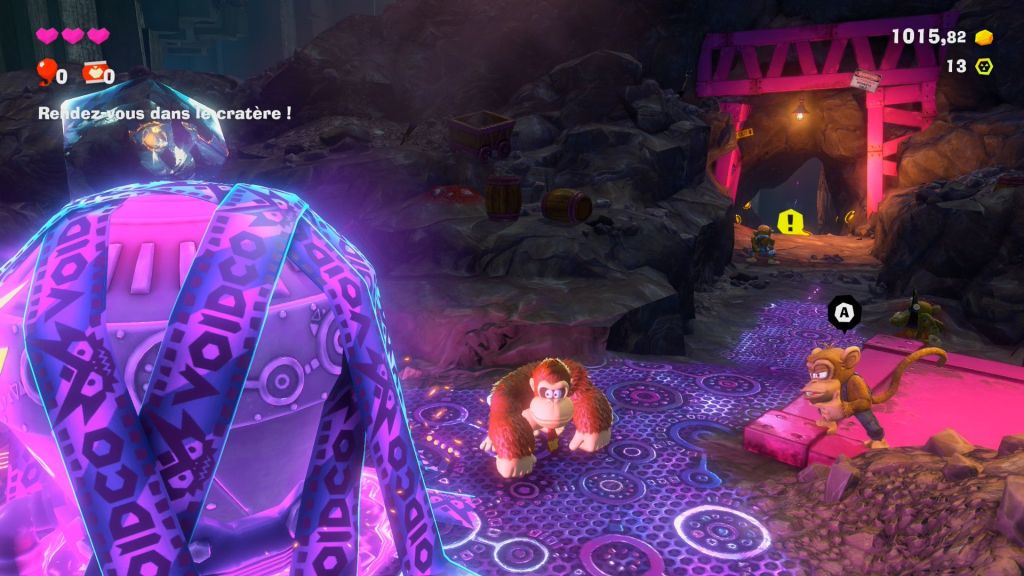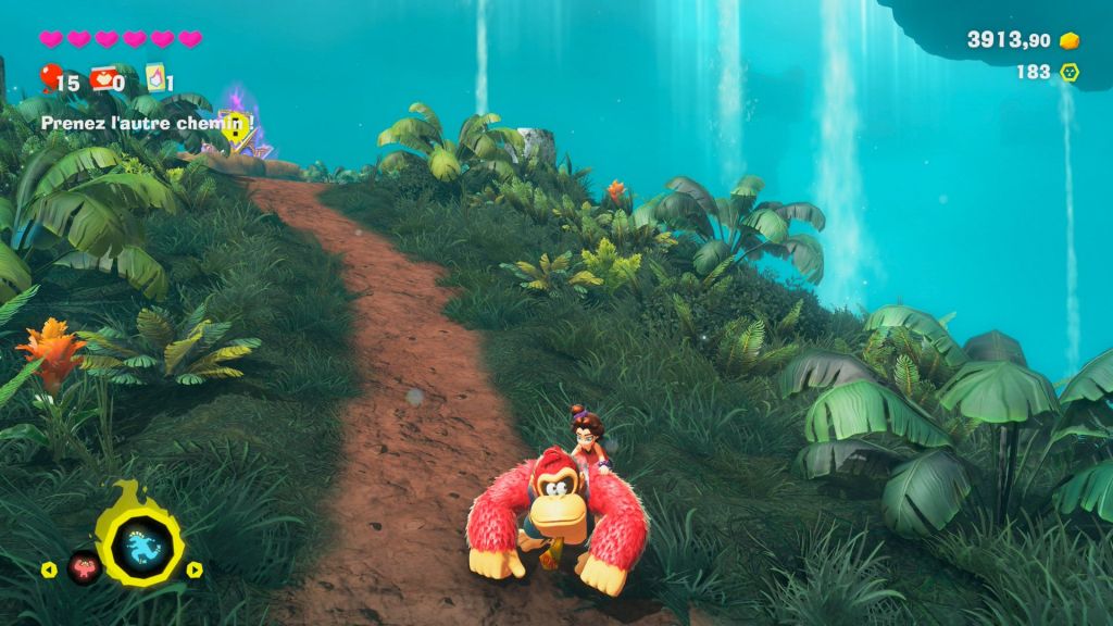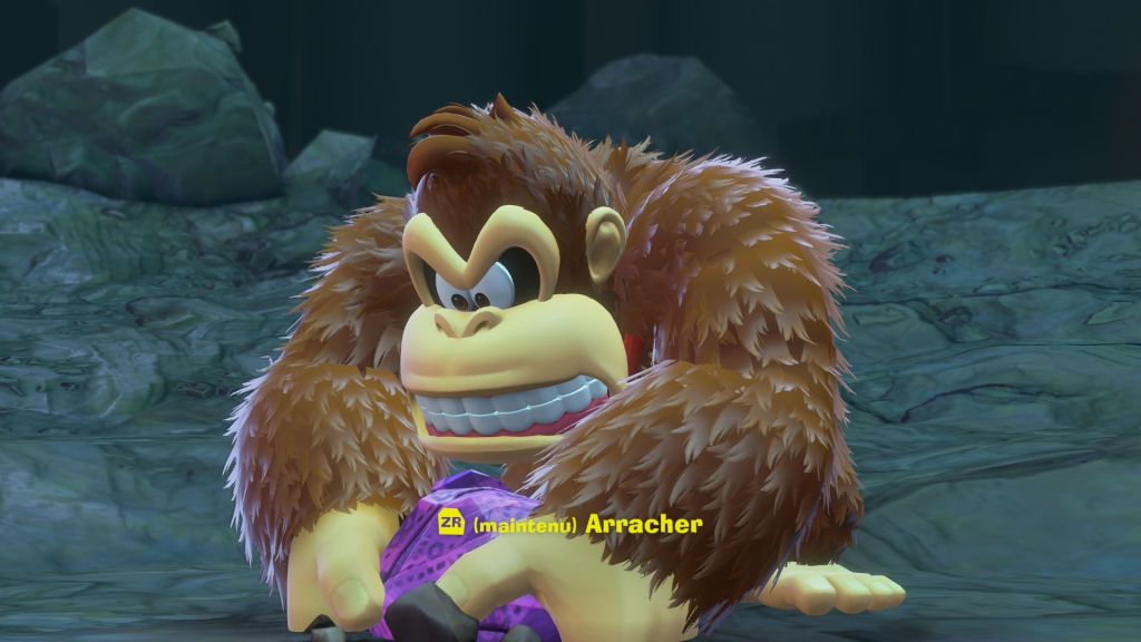 Première déception, l’univers visuel. Exit les jungles luxuriantes, les lianes, les ambiances tropicales qui faisaient l’essence de la série. Bananza ressemble à un mauvais clone de Mario Odyssey. Décors génériques, biomes sans cohérence, esthétique cartoon mal calibrée… ça fonctionnait avec Mario, mais ça ne colle pas du tout à Donkey Kong, personnage bien plus primal et organique. On se demande franchement ce qu’il fout dans ces environnements, sans l’ombre d’une liane ou d’un tronc à escalader.